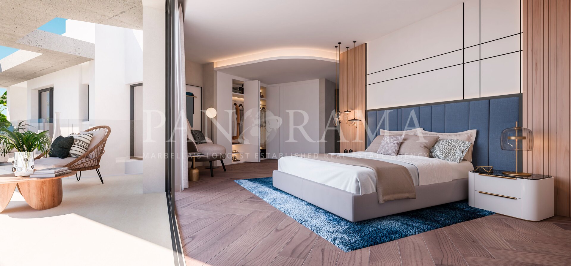 Op de bovenverdieping bevinden zich lichte en ruime slaapkamers met privéterrassen en prachtig uitzicht. De master suite beschikt over een inloopkast, een luxe badkamer en directe toegang tot een privé zonneterras.