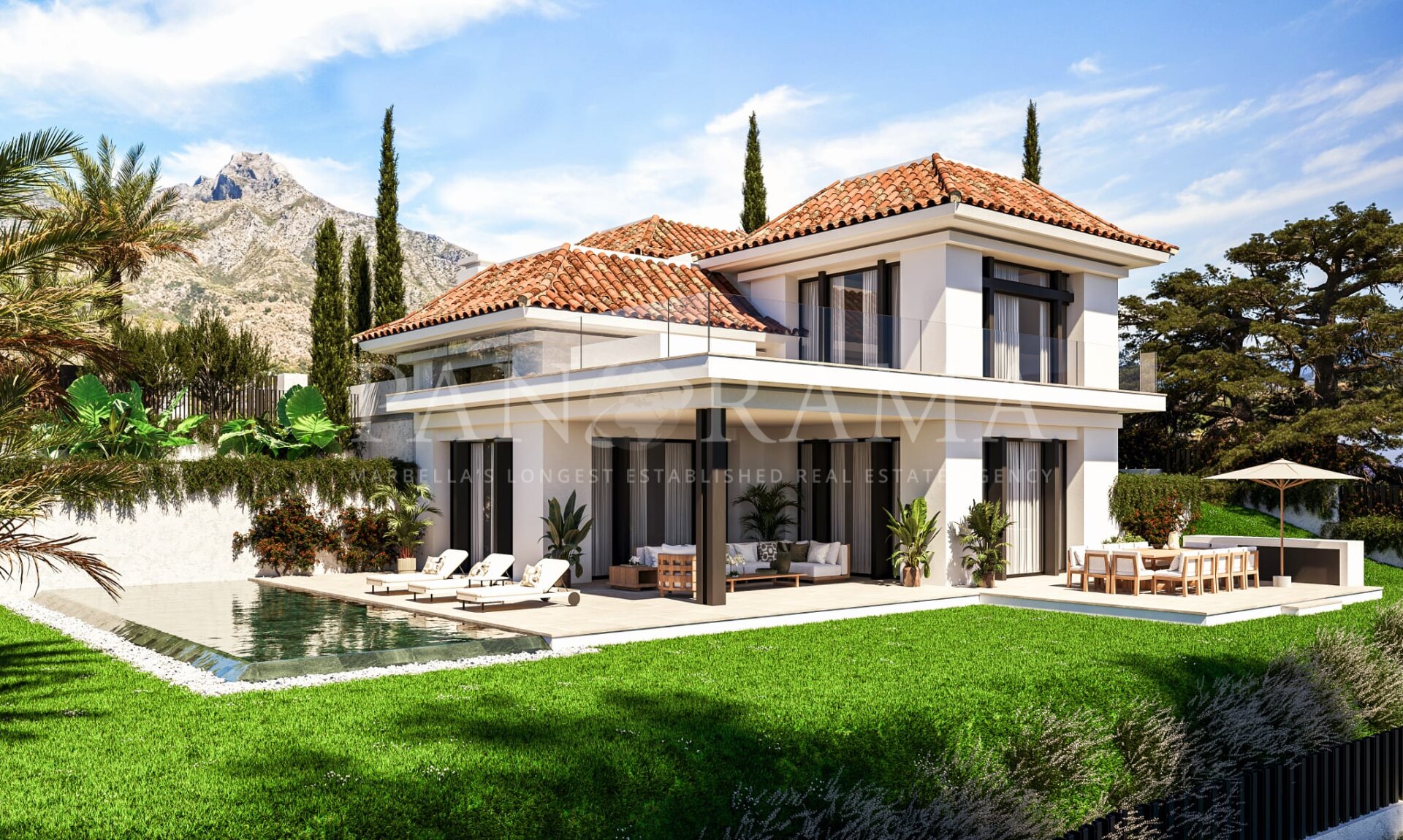 Luxe villa in mediterrane stijl momenteel in aanbouw, gelegen op een toplocatie op korte afstand van het iconische Puente Romano en de ongerepte stranden van Marbella. Deze op het zuiden gelegen villa is ontworpen om de perfecte mix van moderne luxe en tijdloze mediterrane charme te belichamen, en biedt een levensstijl van ongeëvenaard comfort en verfijning.