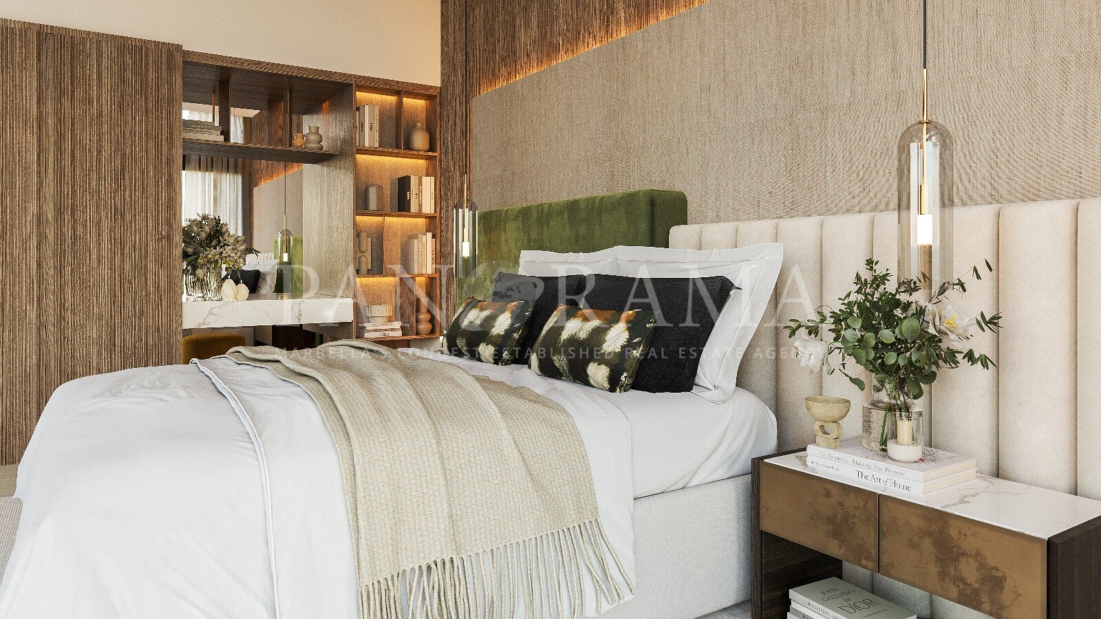 De eerste verdieping is volledig gewijd aan de master suite, die een serene retraite biedt met ongeëvenaarde privacy. De ruime master slaapkamer beschikt over een luxe en-suite badkamer, compleet met premium armaturen en afwerkingen. Stap uit op een van de twee privéterrassen om te genieten van het uitzicht, met een terras met een jacuzzi voor ultieme ontspanning. Deze ruimte is ontworpen om een persoonlijke heiligdom te bieden waar u kunt ontspannen en verjongen.
