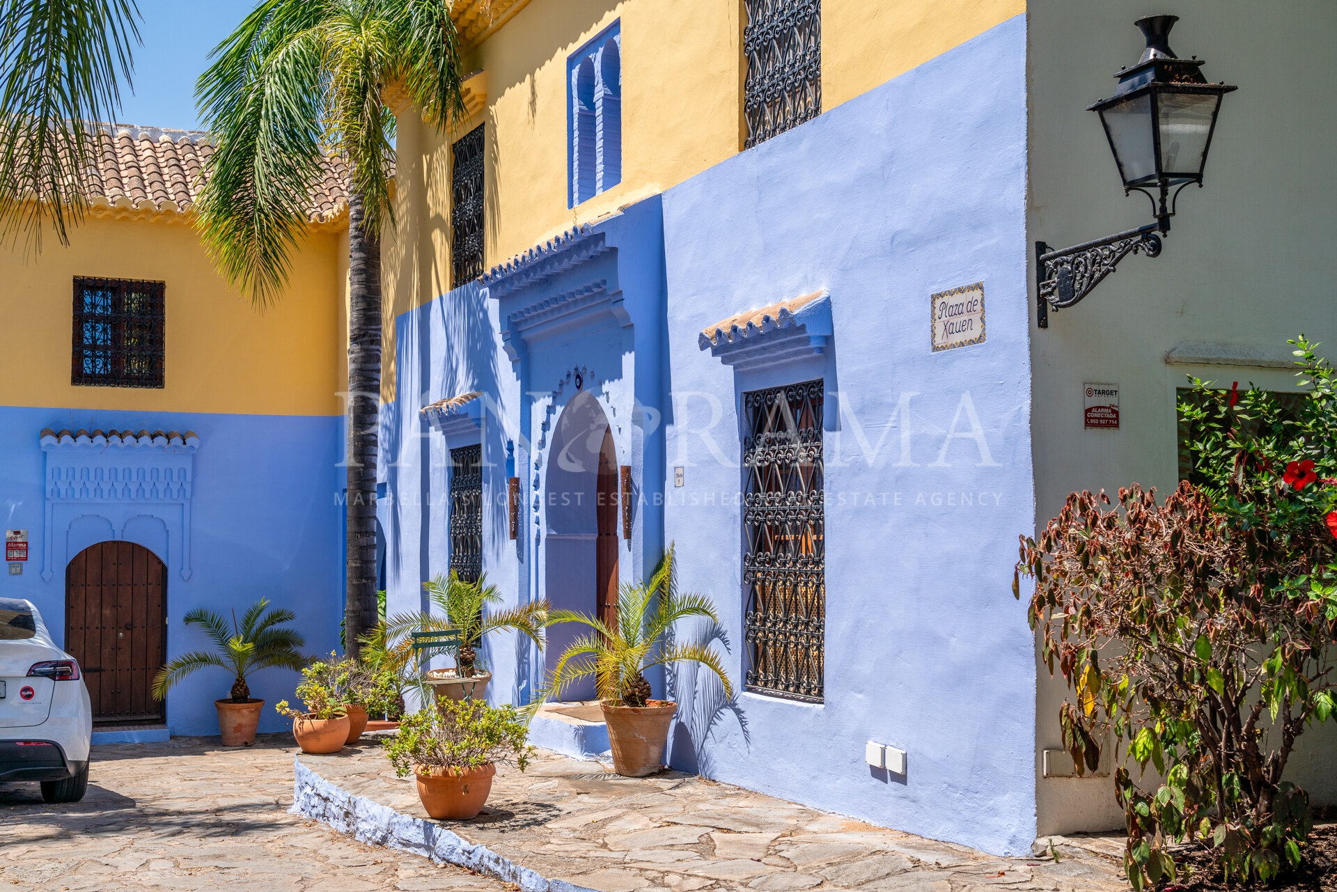 Dit charmante hoek herenhuis is gelegen in een pittoresk Andalusisch dorpstijl complex, dat een unieke mix biedt van traditionele Spaanse architectuur en modern comfort. Gelegen op slechts een korte wandeling van het beroemde Puente Romano resort en de ongerepte stranden van de Gouden Mijl, is de locatie werkelijk onovertroffen. Het herenhuis is verdeeld over drie niveaus en heeft een gewilde westelijke oriëntatie, wat zorgt voor veel natuurlijk licht en warme middagzon gedurende de dag.