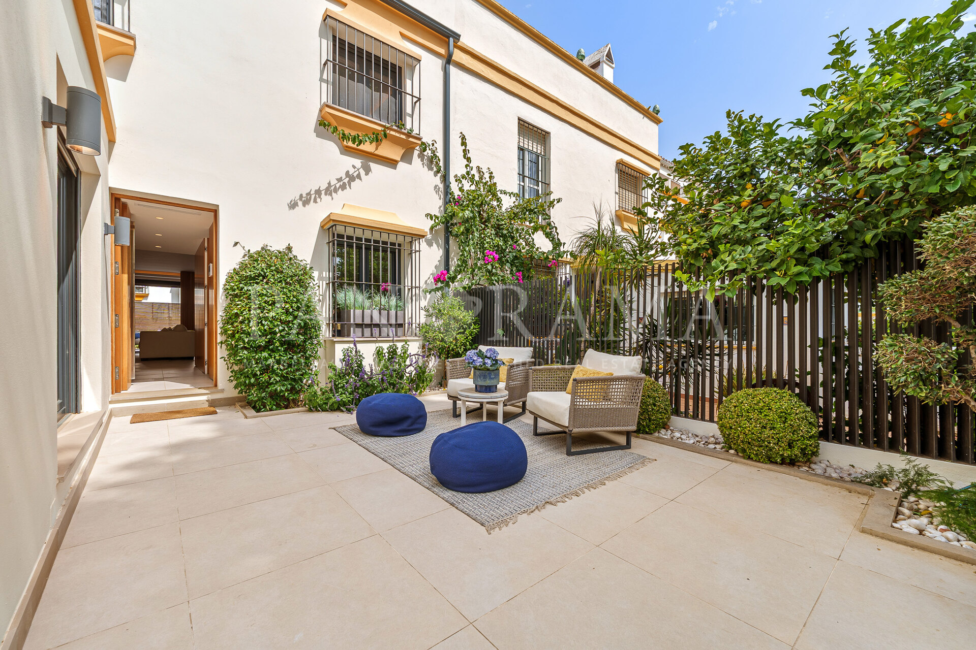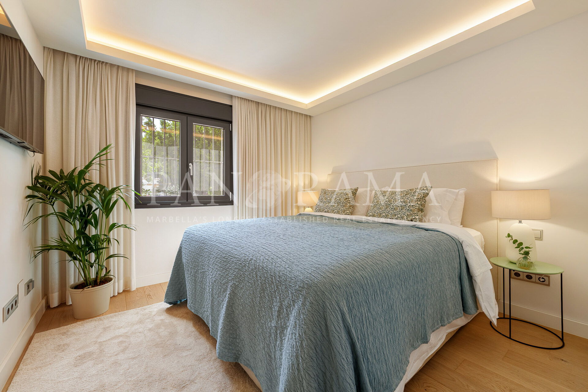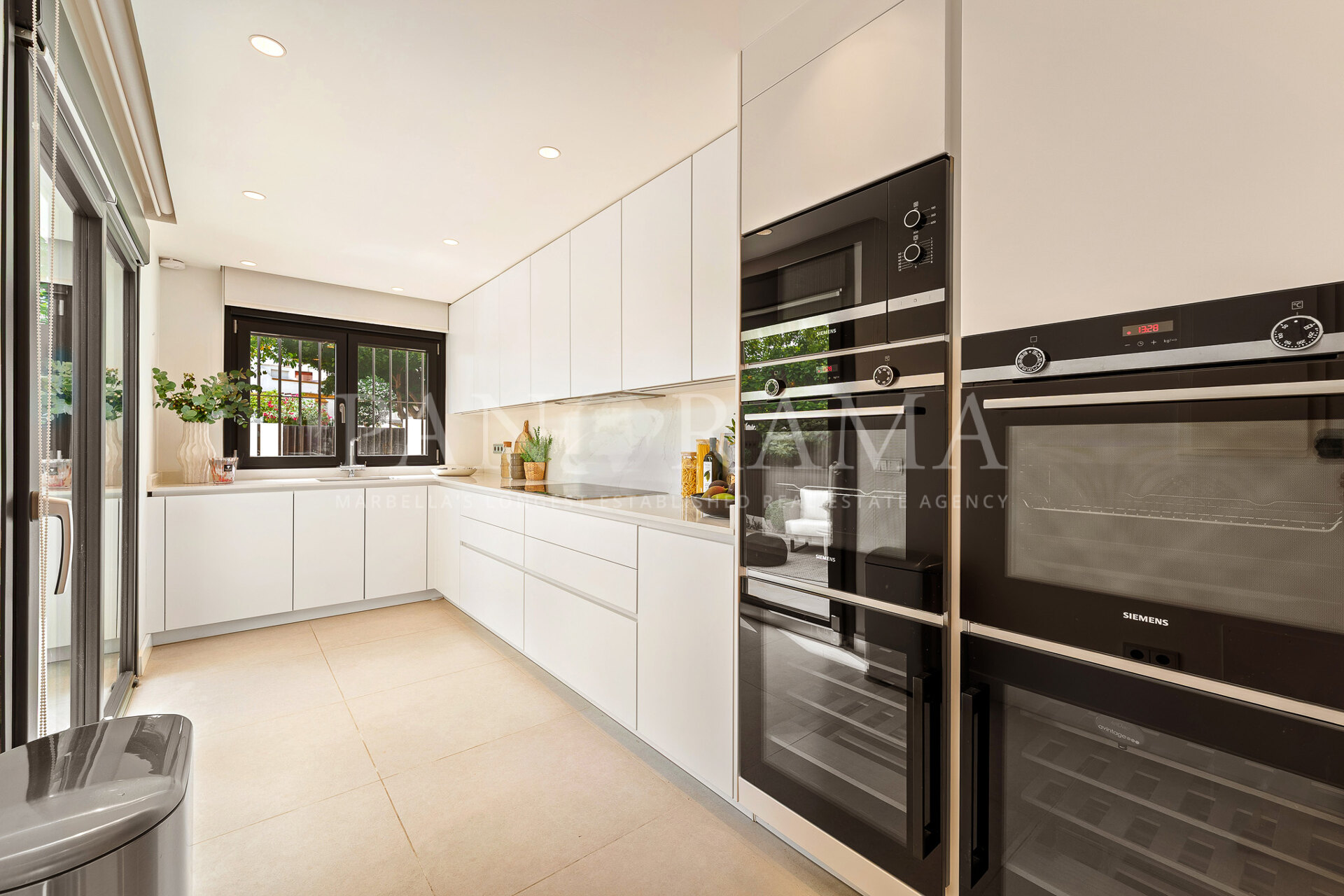 Dit stijlvolle herenhuis bevindt zich in een prestigieuze gemeenschap aan de Golden Mile van Marbella, op korte loopafstand van het beroemde Puente Romano Resort, de strandpromenade en het historische oude centrum van Marbella. De omgeving is rustig en groen, met de berg La Concha als schilderachtig decor, wat zowel rust als nabijheid tot belangrijke voorzieningen biedt.