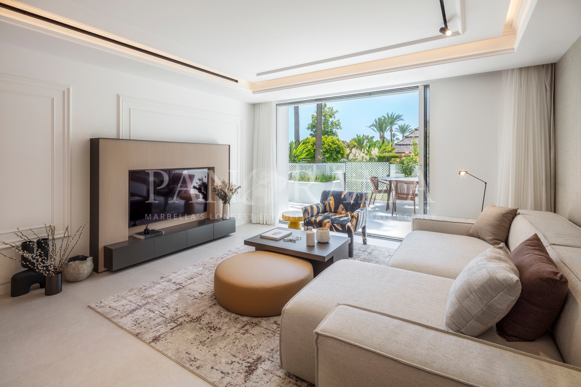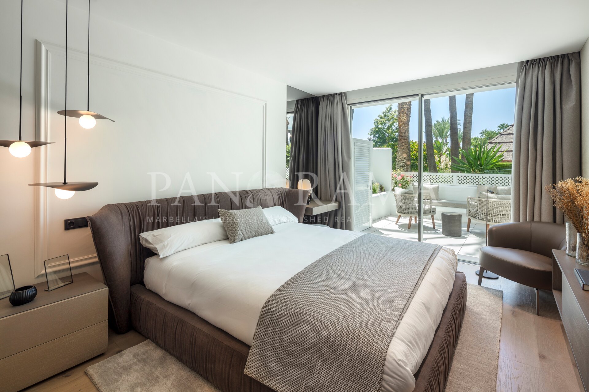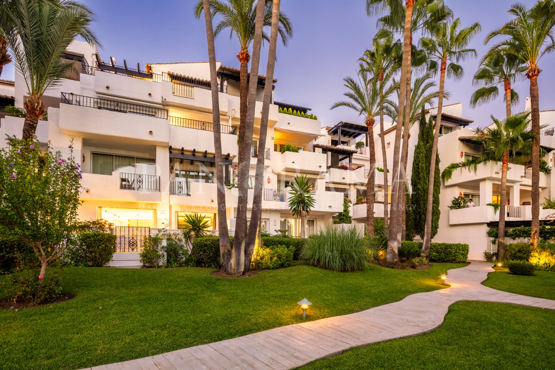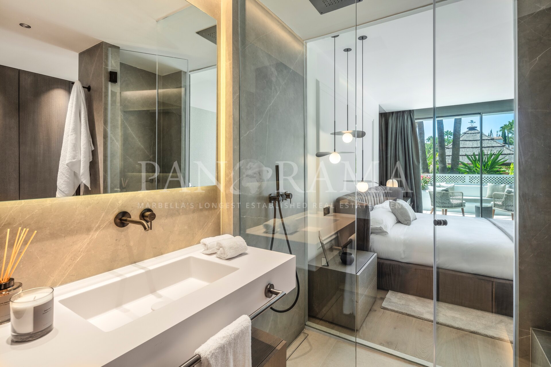 Luxe tuinappartement aan het strand met prachtige uitzichten in Marina Puente Romano