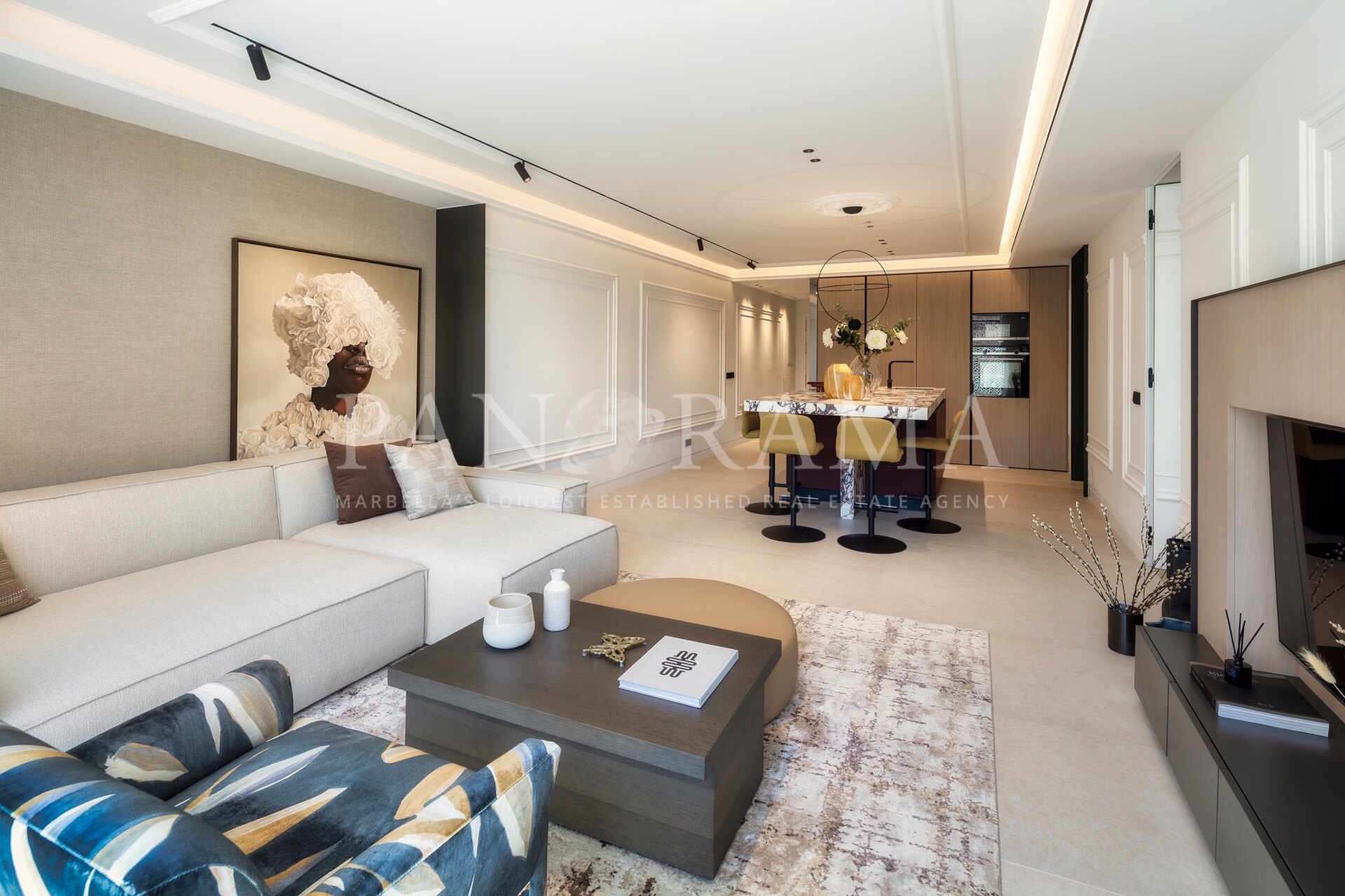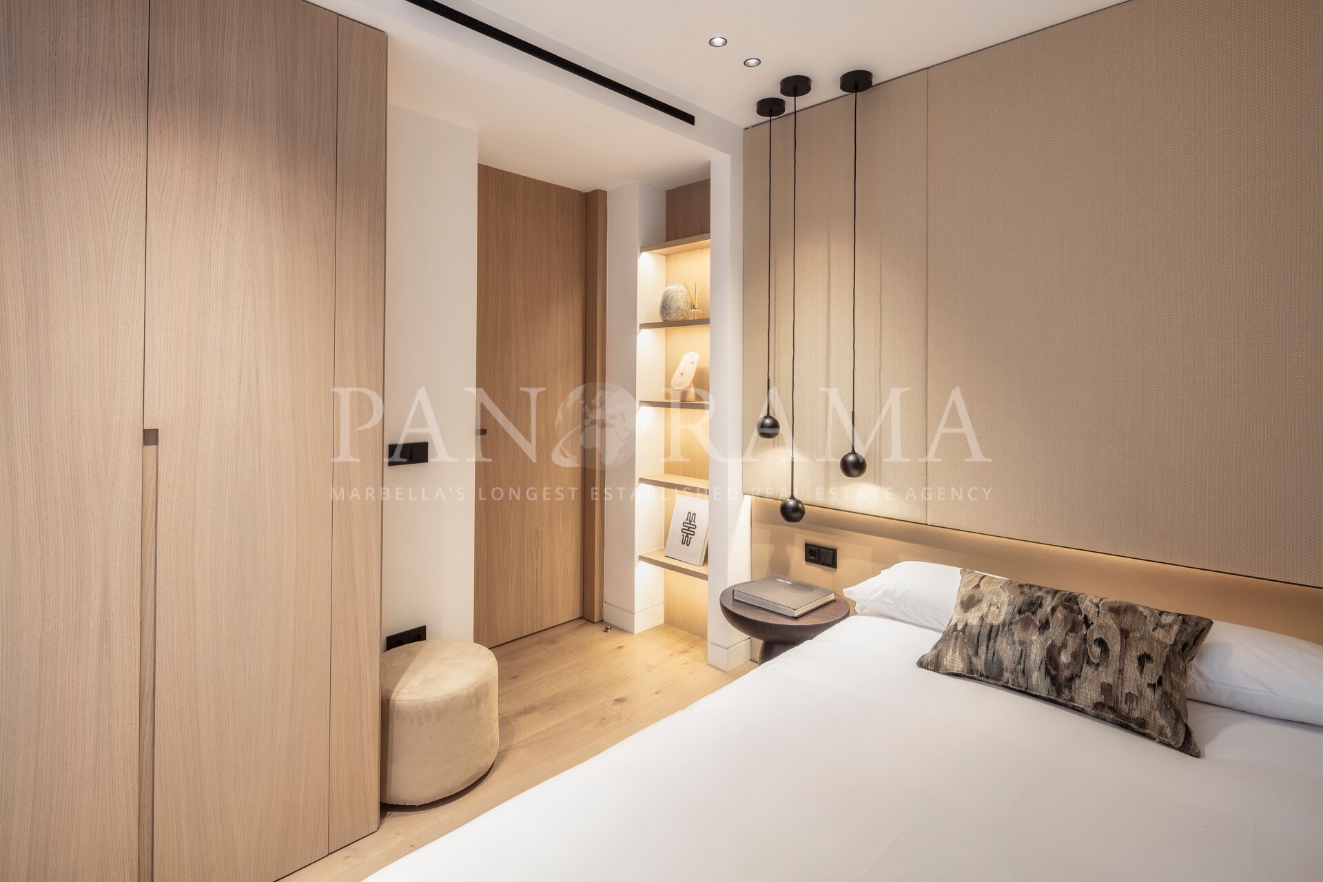 Het appartement beschikt over drie slaapkamers, allemaal met hoogwaardige houten vloeren, onafhankelijke airconditioning en vloerverwarming in de badkamers. De hoofdslaapkamer is bijzonder ruim en biedt directe toegang tot het privéterras, perfect om te genieten van het mediterrane klimaat.