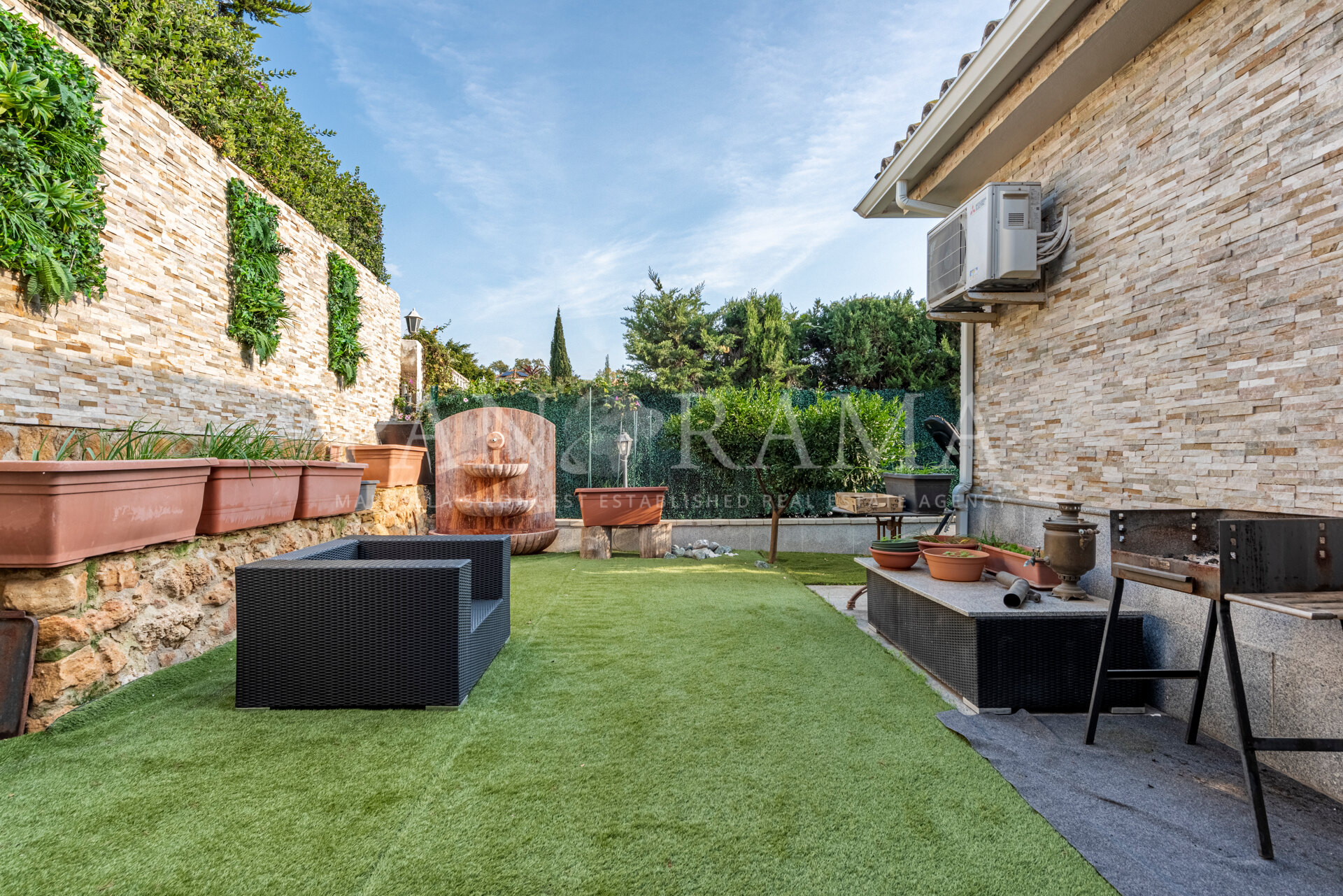 Het hart van het huis opent naar een zorgvuldig onderhouden tuin met een verscheidenheid aan fruitbomen. Deze weelderige groene oase voegt niet alleen charme toe aan de villa, maar creëert ook een oase van rust en privacy. Of u nu koffie drinkt in de schaduw van een fruitboom of geniet van een maaltijd in de buitenlucht op het terras, de rustige sfeer van de tuin is perfect voor ontspanning.