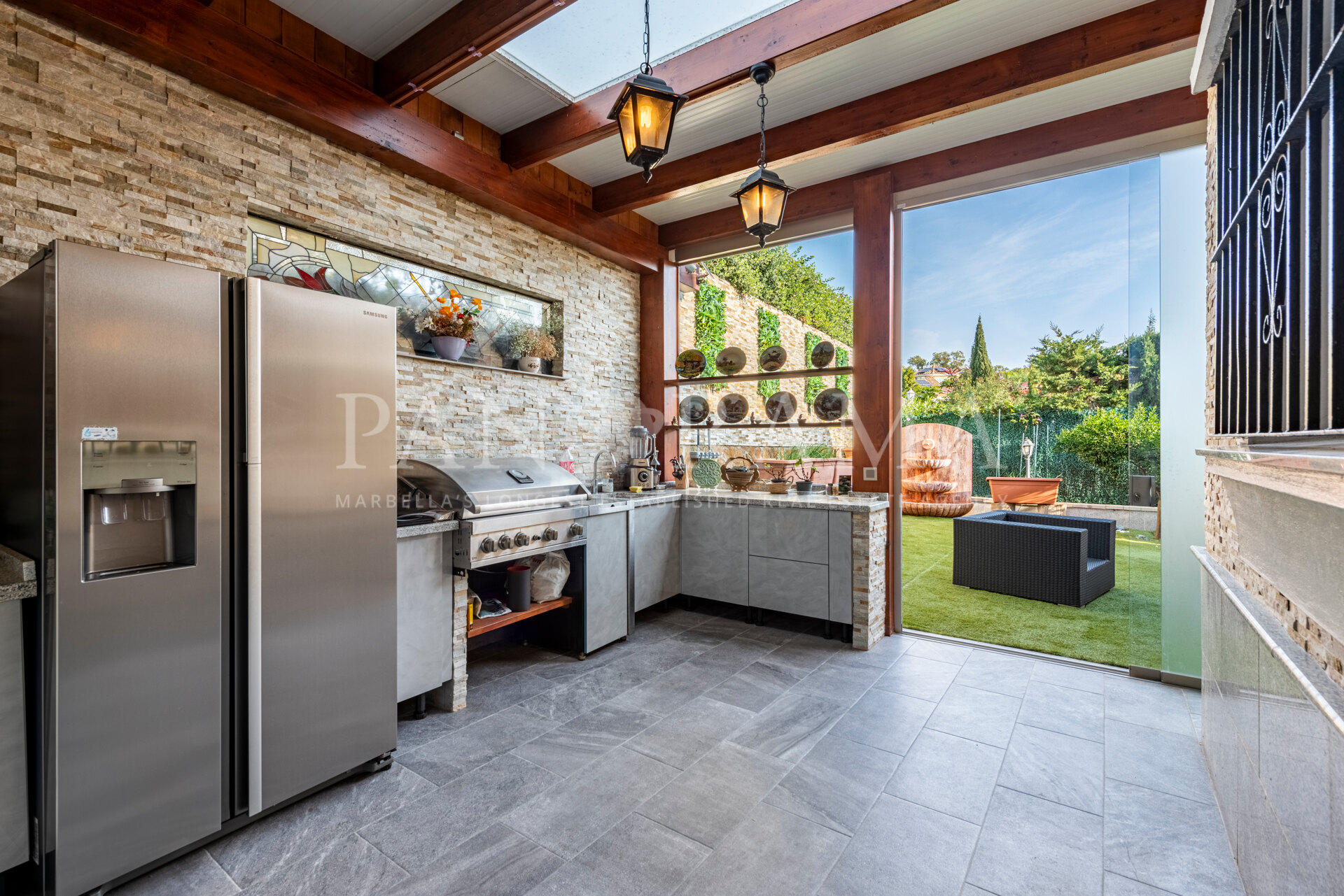 Voor de milieubewuste koper blinkt deze woning uit als een model van duurzaamheid. Een modern zonnepaneelsysteem voorziet de hele villa, inclusief het zwembad, van stroom, wat zorgt voor een energiezuinige levensstijl die de impact op het milieu vermindert. Deze groene oplossing verlaagt niet alleen de energiekosten, maar benadrukt ook het vooruitstrevende ontwerp van de villa.
