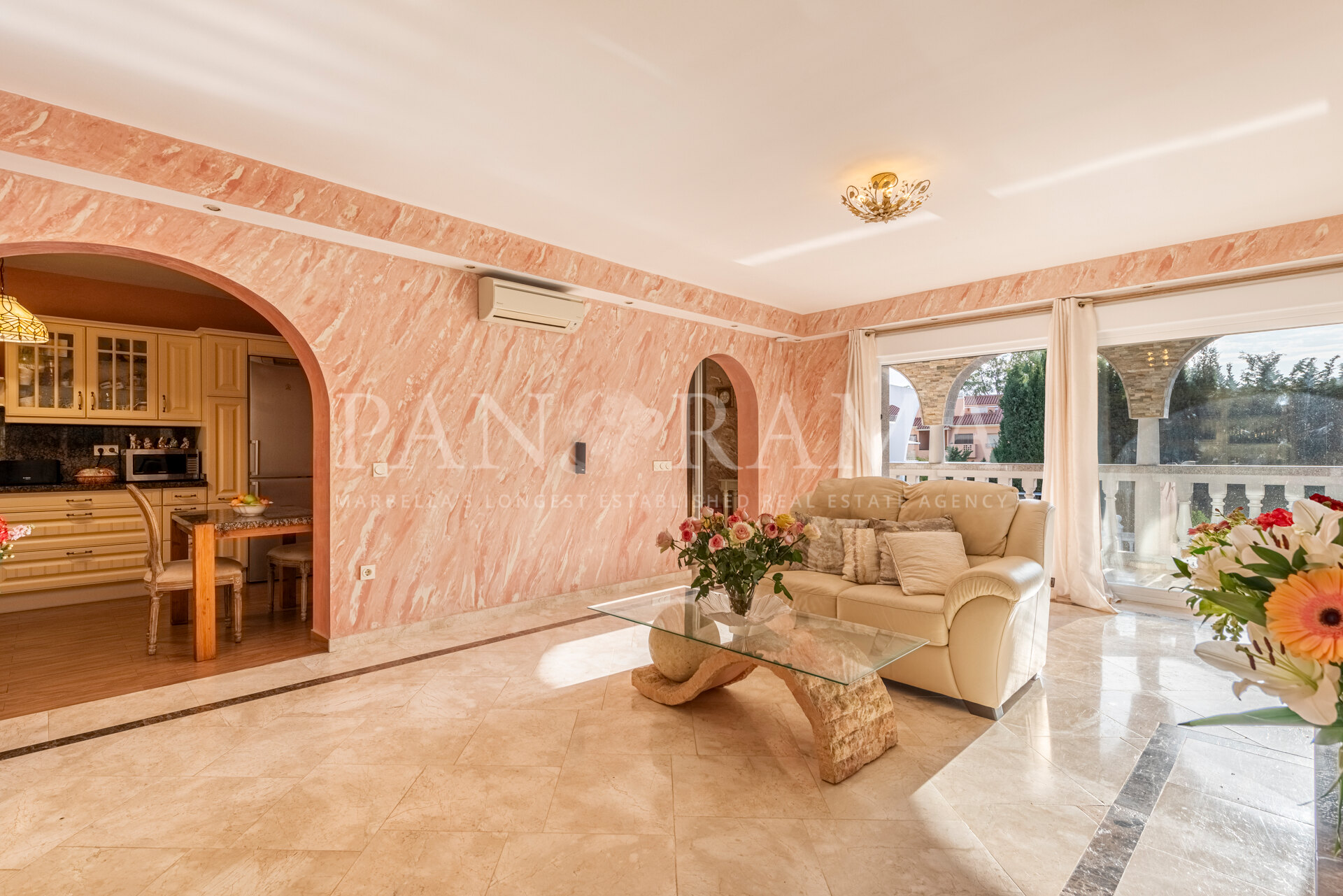 Gelegen in het zeer gewilde gebied van Carib Playa, biedt deze charmante villa een buitengewone kans om het toppunt van luxe wonen te ervaren. Verspreid over twee verdiepingen beschikt deze zorgvuldig ontworpen woning over 4 ruime slaapkamers, 2 volledige badkamers en een extra gastentoilet, waardoor het de ideale keuze is voor gezinnen of degenen die graag gasten ontvangen. Door moderne stijl te combineren met tijdloze elegantie, zorgt deze woning ervoor dat elk comfort wordt geboden voor een verfijnde levensstijl.