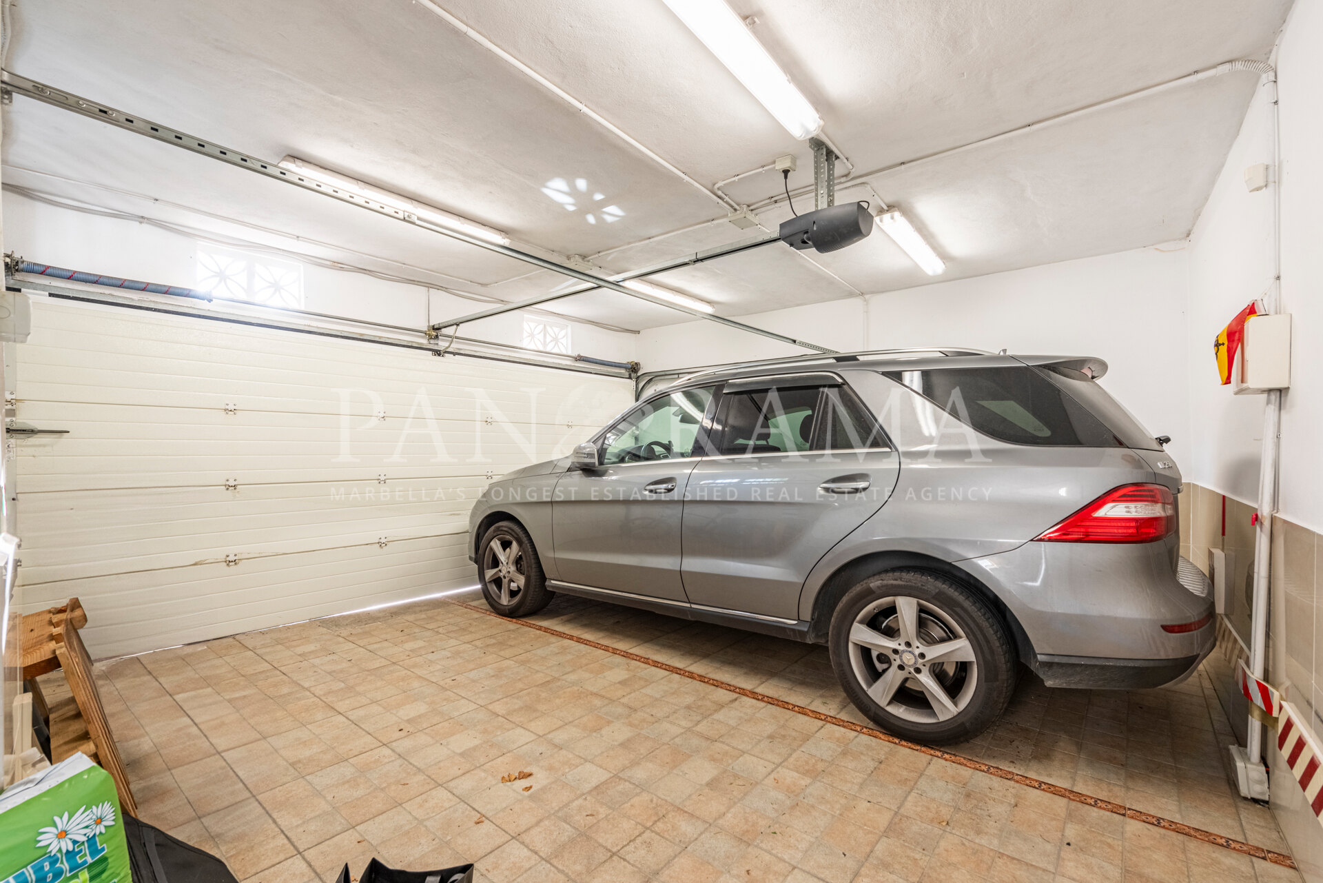 De praktische kant van de villa strekt zich uit tot de beveiligde garage, die voldoende ruimte biedt voor parkeren en opslag. Ontworpen met gemak in gedachten, zorgt de garage ervoor dat uw voertuigen veilig en gemakkelijk toegankelijk blijven.