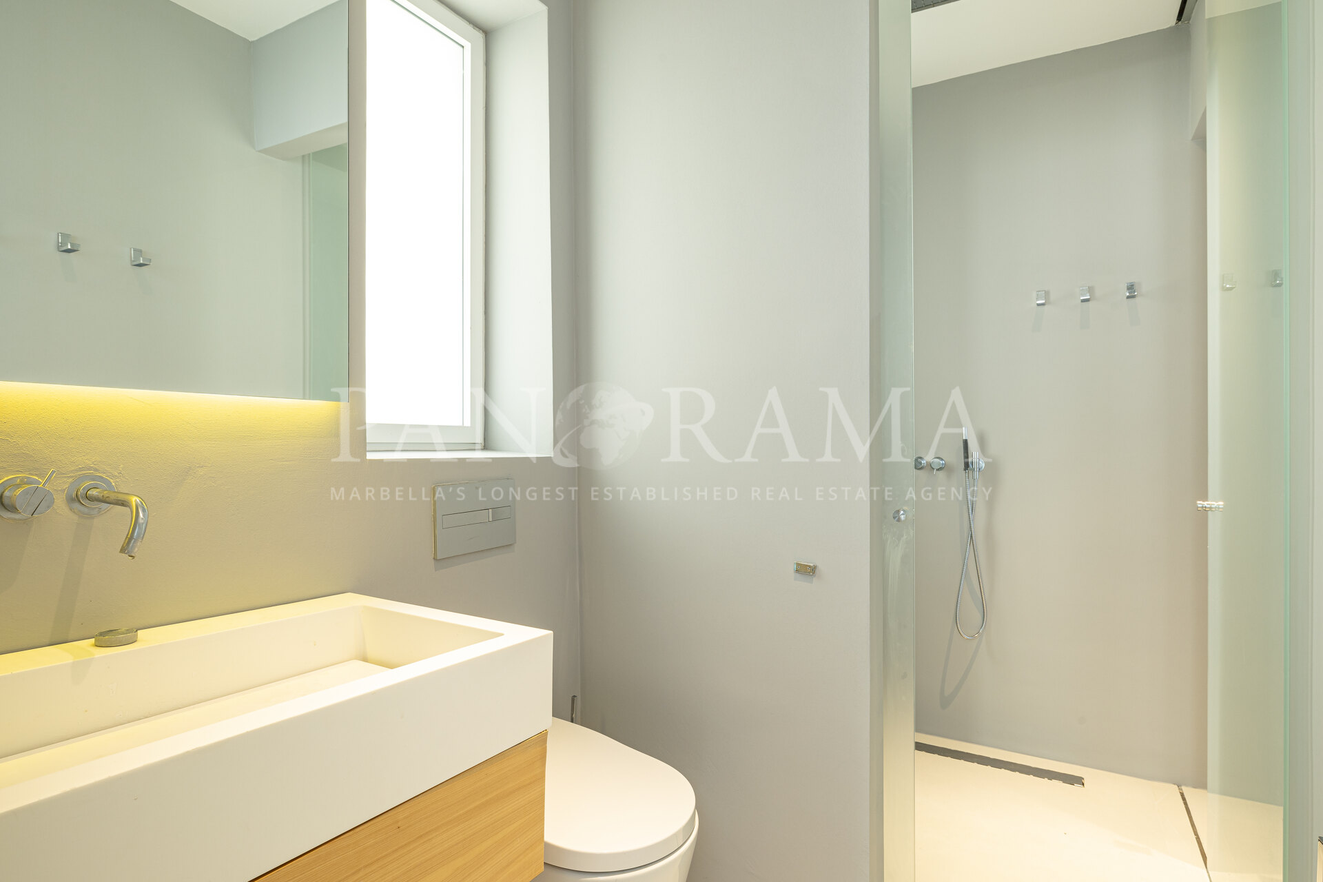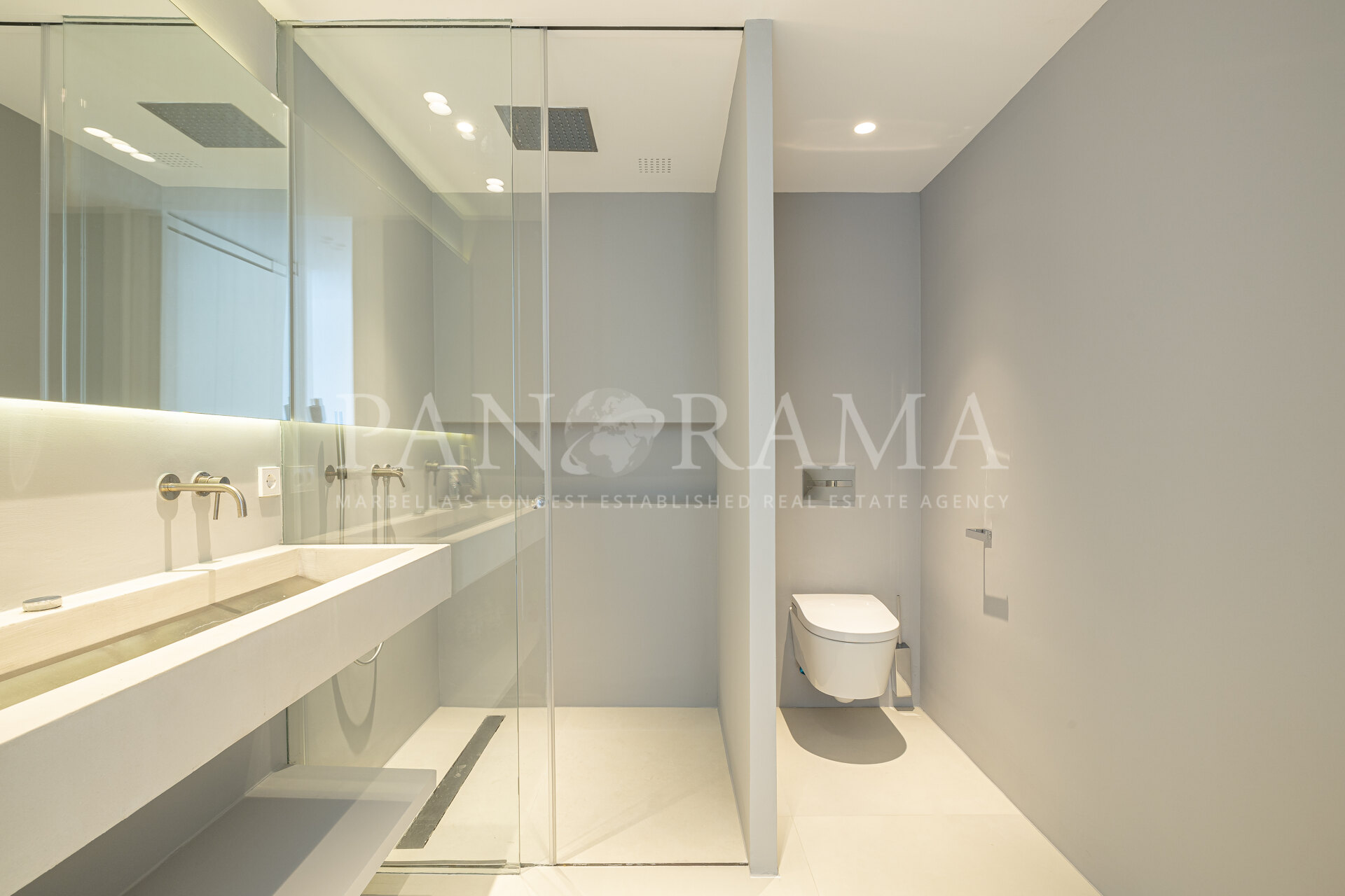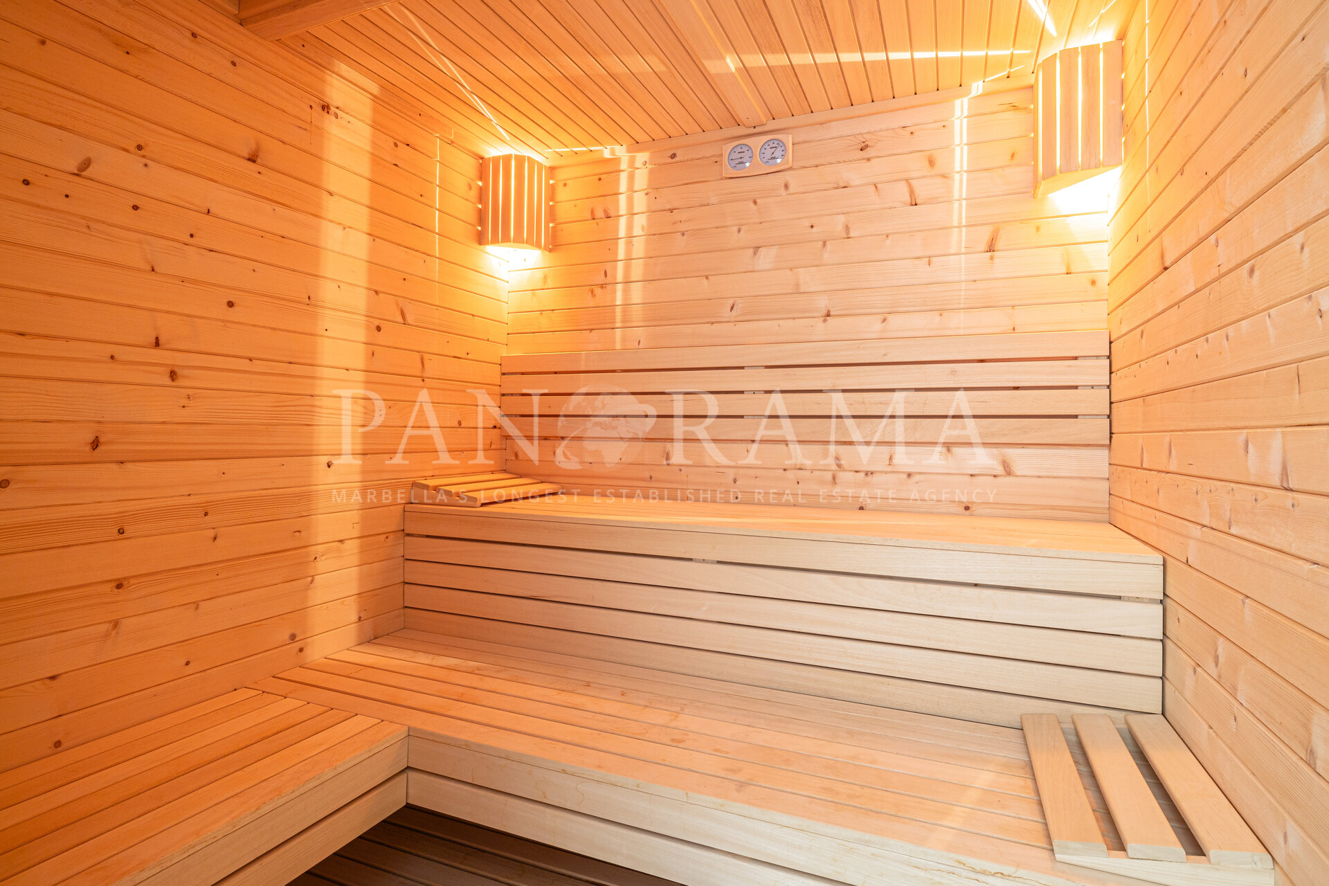 Met de benijdenswaardige nabijheid van de Duitse School is deze villa in La Mairena een toevluchtsoord voor degenen die een moderne, luxe levensstijl zoeken te midden van de natuur, maar toch dicht bij de levendige aanbiedingen van Marbella. De combinatie van ontwerp, locatie en voorzieningen, inclusief de extra luxe van een sauna, maakt het een uniek en zeer gewild pand voor veeleisende kopers.