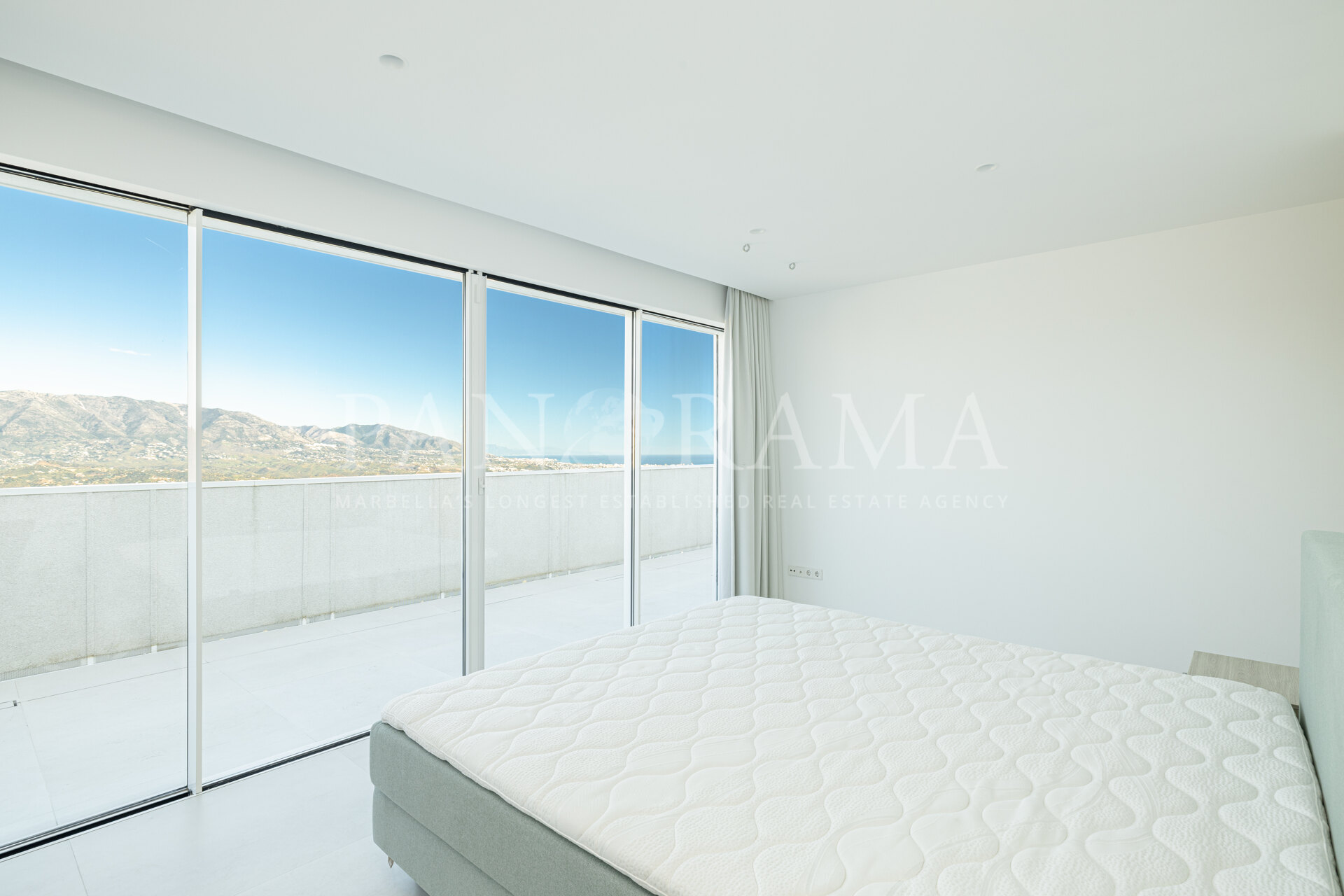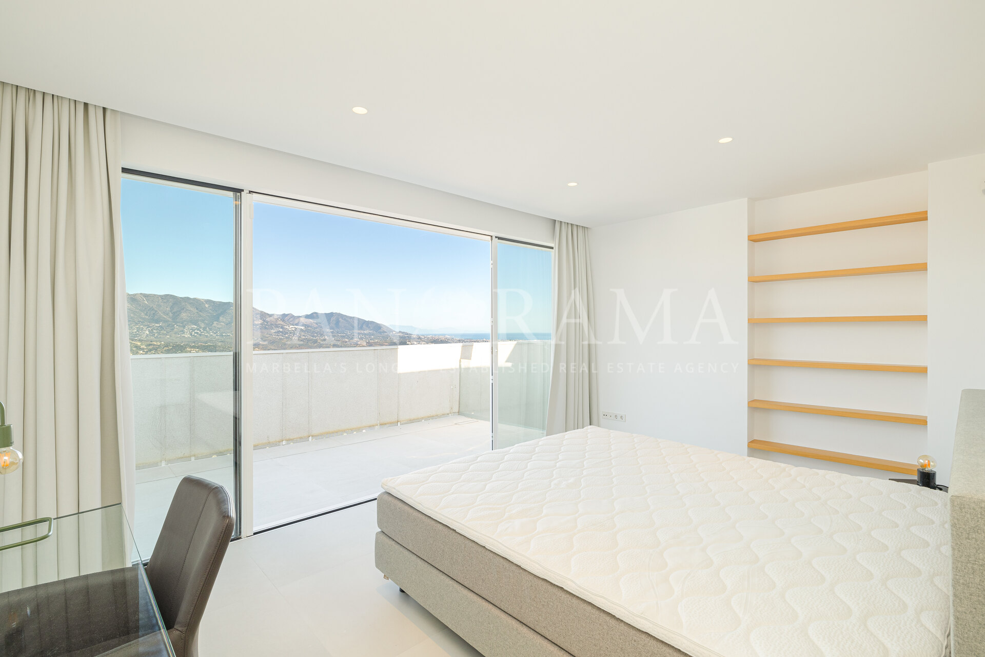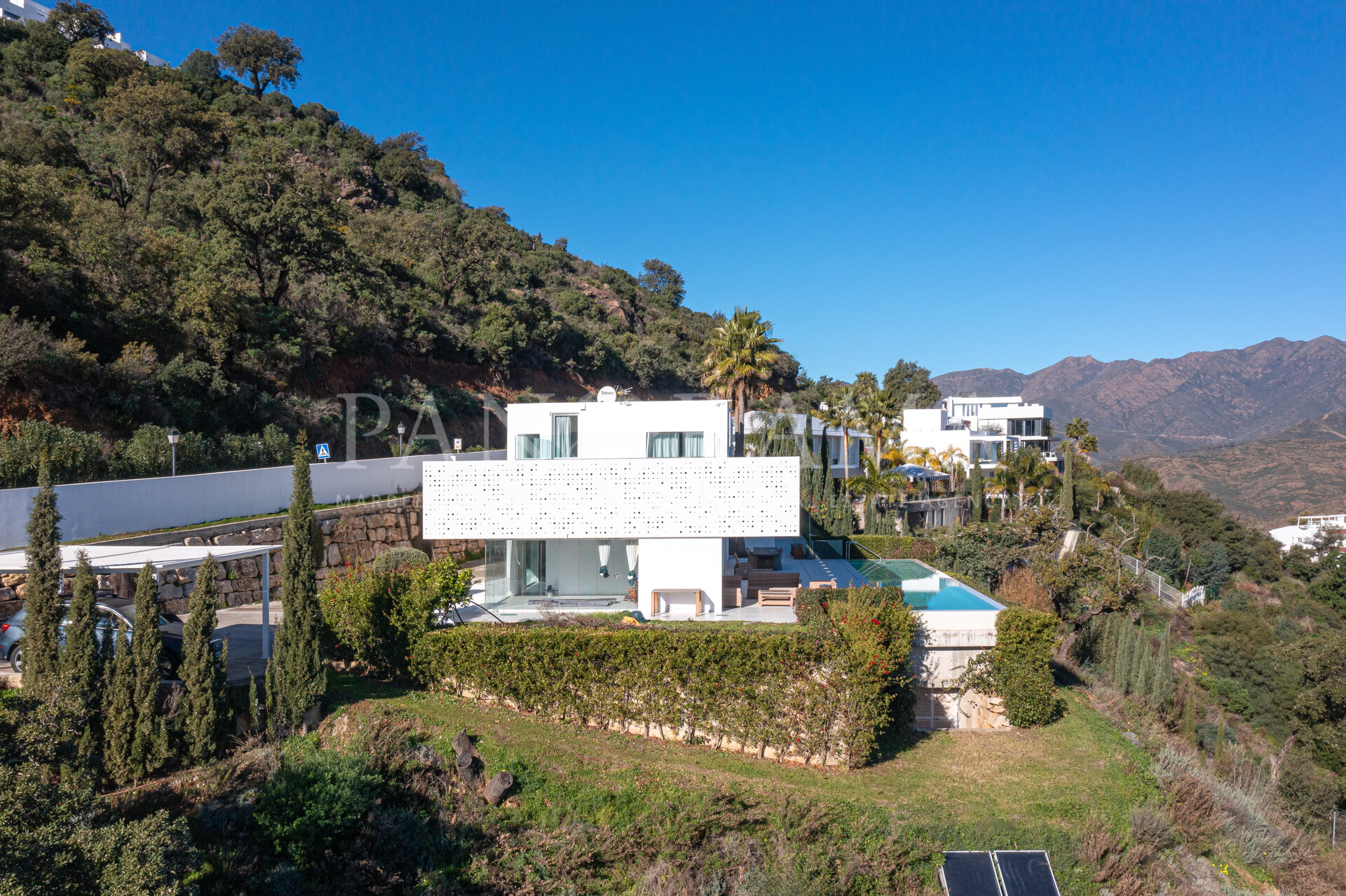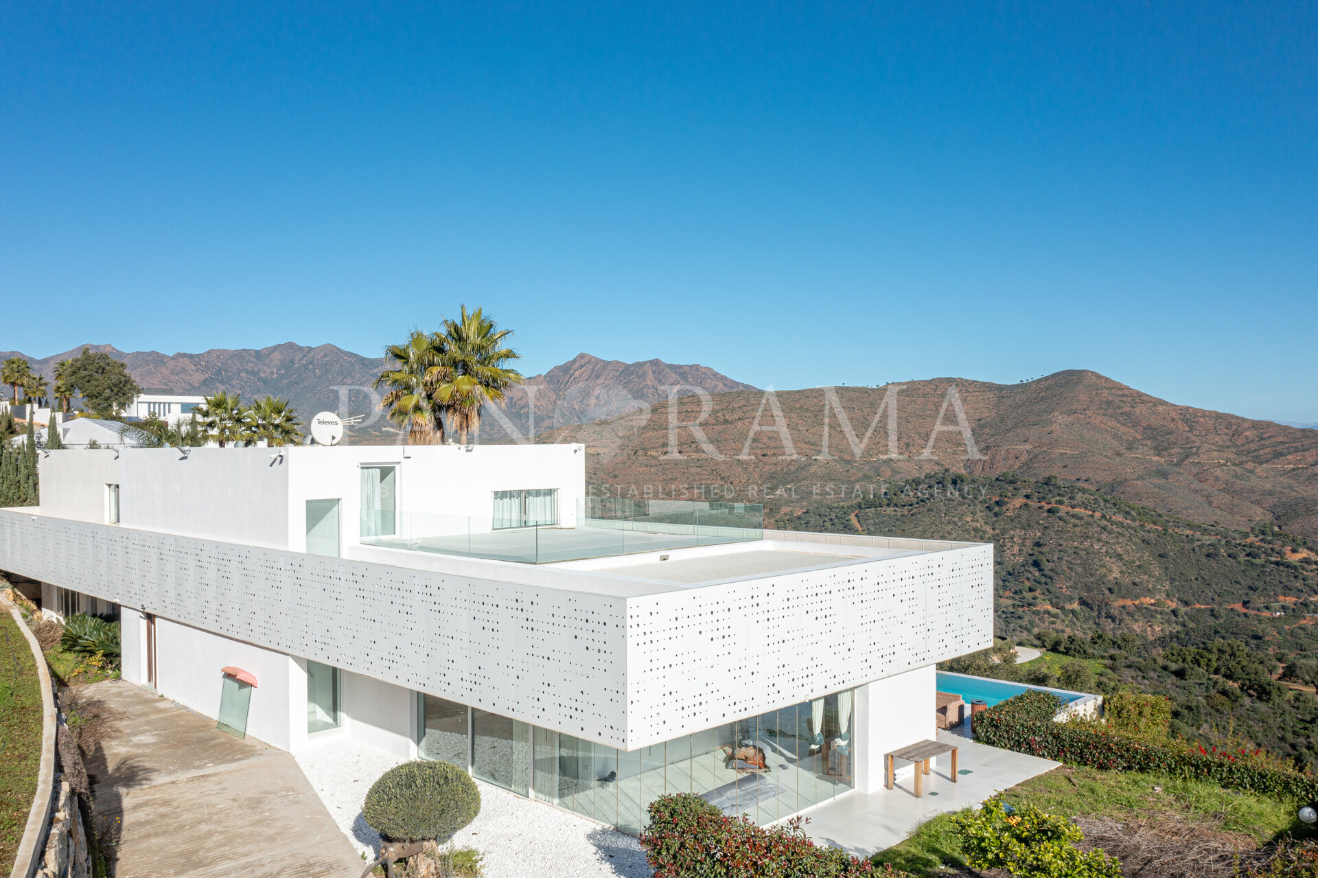 Gelegen in de rustige en schilderachtige enclave van La Mairena, Oost-Marbella, biedt deze prachtige moderne villa, gebouwd in 2017, een ongeëvenaarde mix van luxe, comfort en adembenemende natuurlijke schoonheid. Gelegen op een uitgestrekt perceel van 3.000 m² en met 739 m² aan bebouwde ruimte verdeeld over drie zorgvuldig ontworpen niveaus, is dit pand het toppunt van eigentijdse elegantie, perfect voor gezinsleven of het hele jaar door gasten ontvangen.