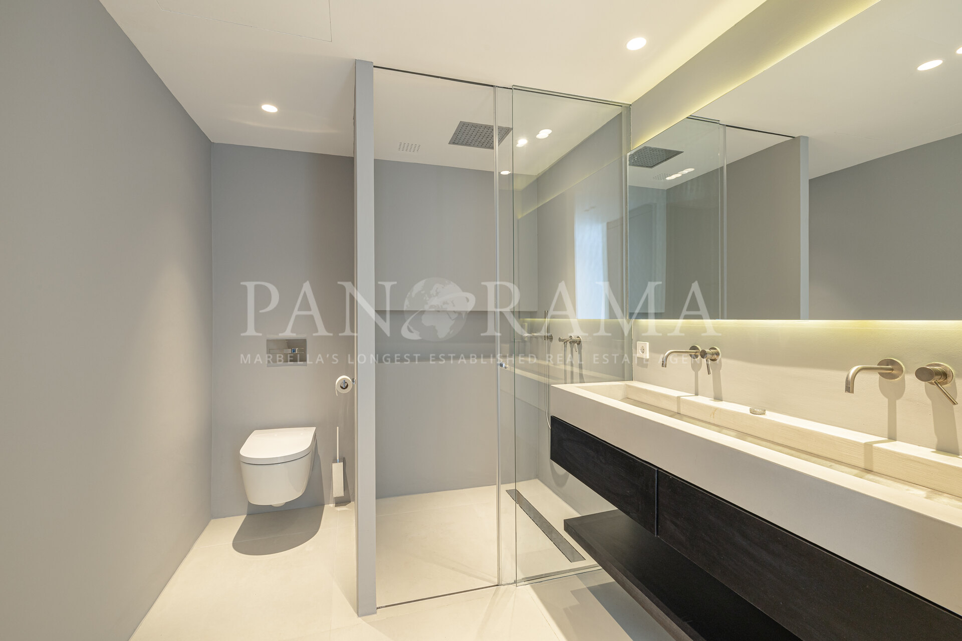 Adembenemende moderne villa aan het strand met onverslaanbaar uitzicht in Costabella, Marbella Oost