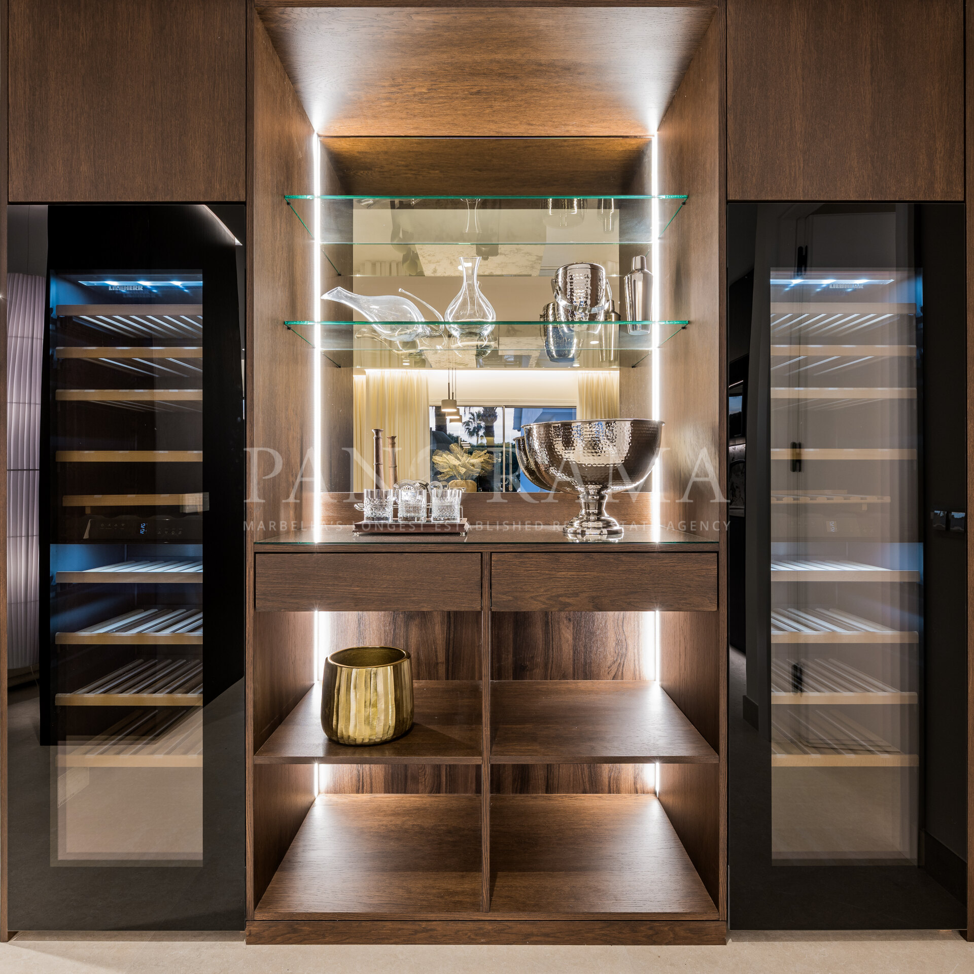 De strakke, eigentijdse keuken is een droom voor elke chef-kok en biedt zowel vorm als functie. Het beschikt over een centraal eiland, minimalistische kasten en premium Siemens-apparatuur—perfect voor informeel koken of stijlvol gastvrijheid bieden.
