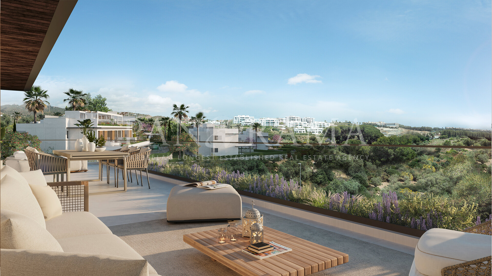 Gelegen tussen glooiende heuvels aan de rand van Marbella en gestreeld door zeebriesjes en een eindeloze lucht, is deze nieuwe ontwikkeling ontworpen voor mensen die willen genieten van vrije tijd, sport, frisse lucht en rust. Daarom is het zeer dicht bij Marbella gelegen, maar ver van de drukste en levendigste gebieden. De nabijheid van het strand en prestigieuze golfbanen maakt het tot het middelpunt van de aandacht voor degenen die op zoek zijn naar een nieuw huis aan de Costa del Sol. In totaal zullen 104 woningen met drie en vier slaapkamers uw verwachtingen overtreffen en uw droom vervullen om de beste tijden te beleven op de best mogelijke locatie. Hedendaags design en hoogwaardige specificaties in een omheinde eerstelijns golfgemeenschap die totale privacy biedt en tuingebieden ontworpen voor familierelaxatie onder eeuwenoude pijnbomen.