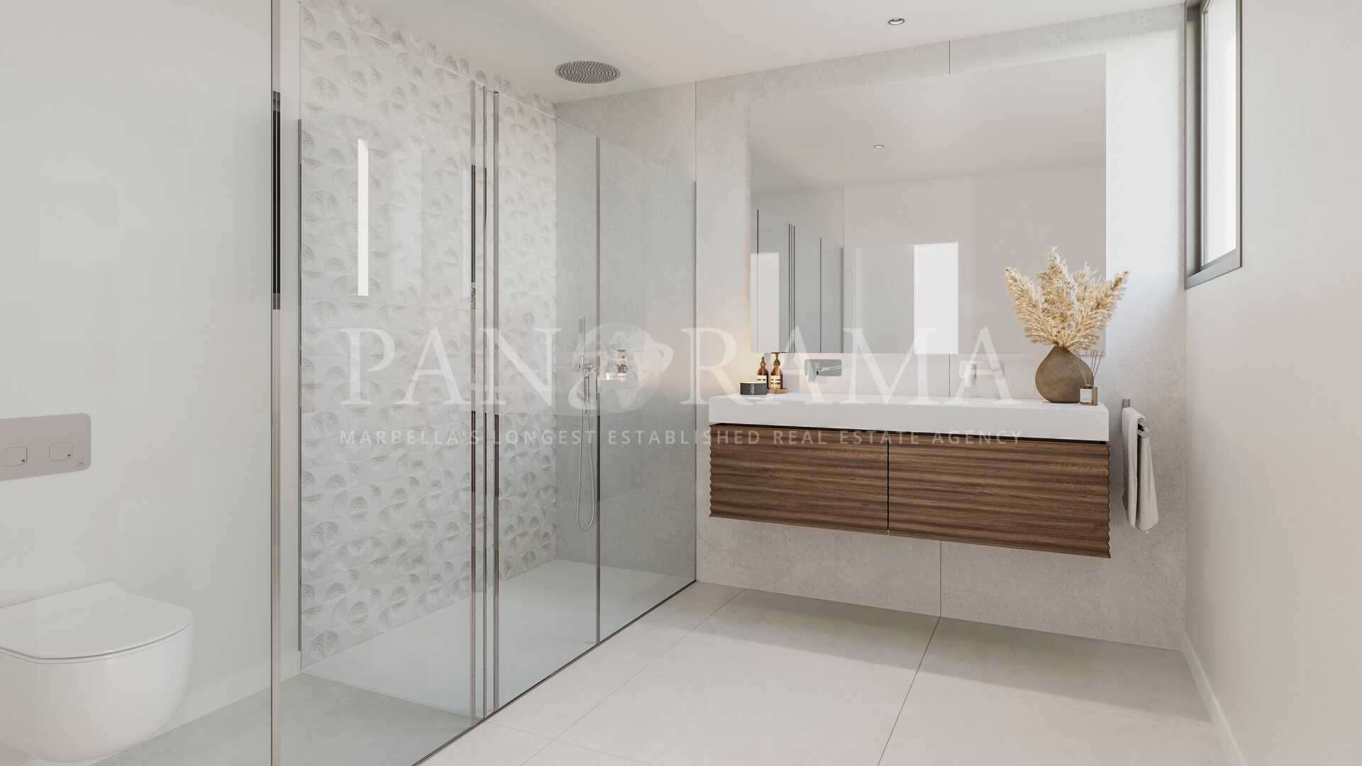 De gemeenschap zal beschikken over twee grote zwembaden met zonneterrassen waar u kunt genieten van de lange uren zonneschijn die Marbella te bieden heeft. Gecombineerde woon- en keukenruimtes en panoramische ramen in zowel slaapkamers als woonkamer maken optimaal gebruik van natuurlijk licht op elk moment van de dag. Spectaculaire terrassen zijn perfect voor buitenmaaltijden en ontspanning in het beste gezelschap. Keukens zijn ontworpen als een integraal onderdeel van de woonruimte om een heldere en ruime leefruimte te creëren voor dagelijks gebruik. Specificaties weerspiegelen de kwaliteit die u zou verwachten van een dergelijk high-end project, met kwarts aanrechtbladen, ingebouwde apparaten en geïntegreerde LED-verlichting om warmte en verfijning te bieden. In de badkamers weerspiegelt de elegantie van grootformaat porseleinen tegels de algehele toewijding aan kwaliteit en design.