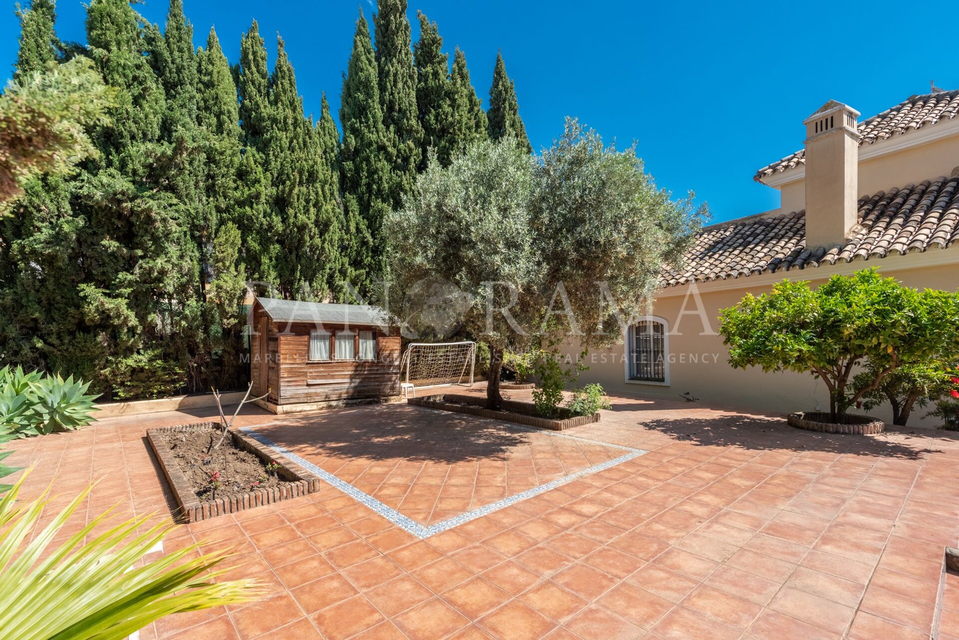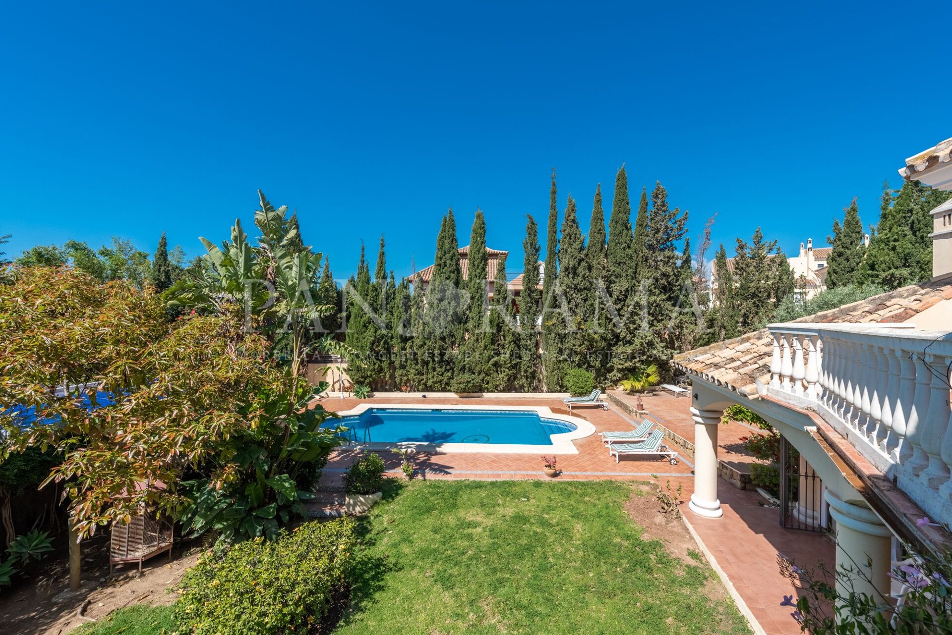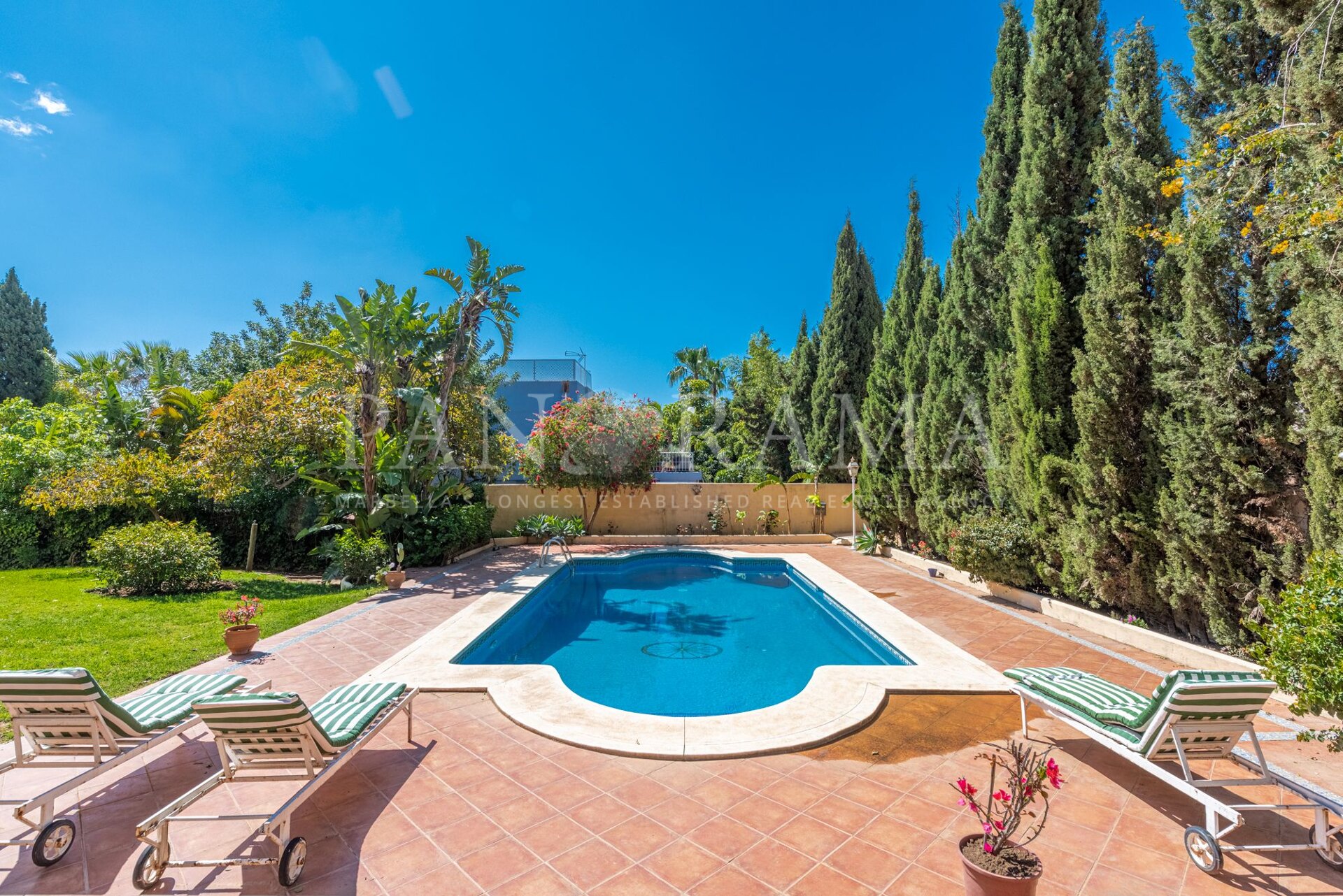 Mooie villa in de Xarblanca omgeving dichtbij alle voorzieningen en op 5 minuten rijden van het centrum van Marbella. Het bestaat uit een perceel van 1.100 m², met een zeer grote tuin omringd door planten en palmbomen in het hele huis, met een groot zwembad. De woning is als volgt verdeeld: Op de eerste verdieping bevindt zich een ruime woonkamer met open haard en toegang tot de tuin, een veranda die ook in verbinding staat met de keuken en twee patio’s. In totaal zijn er acht slaapkamers, elk met een eigen inbouwkast, een terras, waarvan één slaapkamer een eigen badkamer heeft, met twee terrassen, één op het zuiden en de andere op het noorden. Op de bovenste verdieping bevindt zich een zolder met een slaapkamer en een toilet en een terras met uitstekend uitzicht. Er is een garage voor twee auto’s en een kleine wijnkelder.