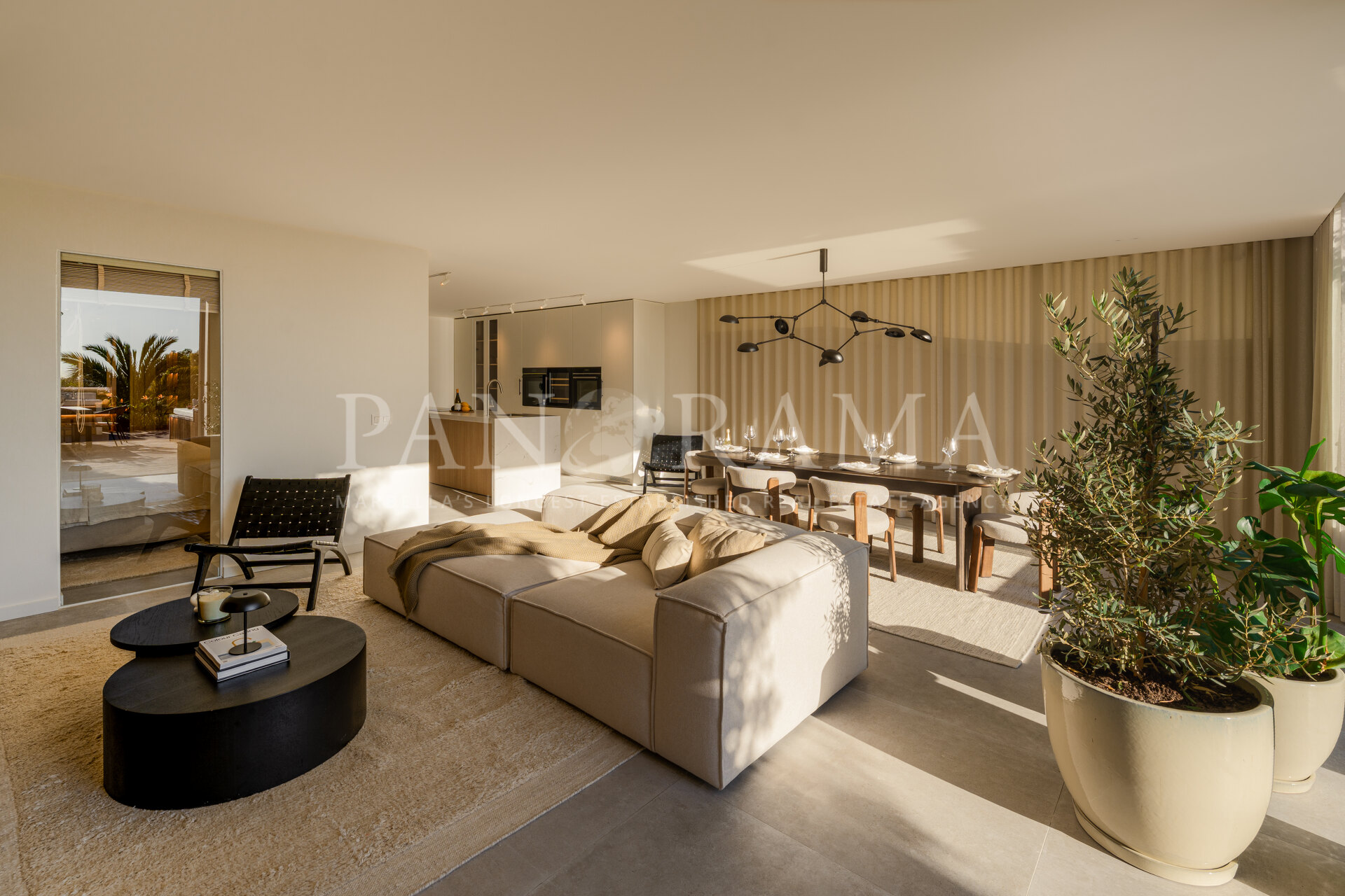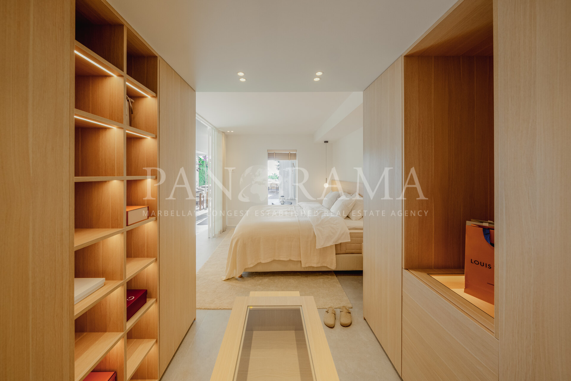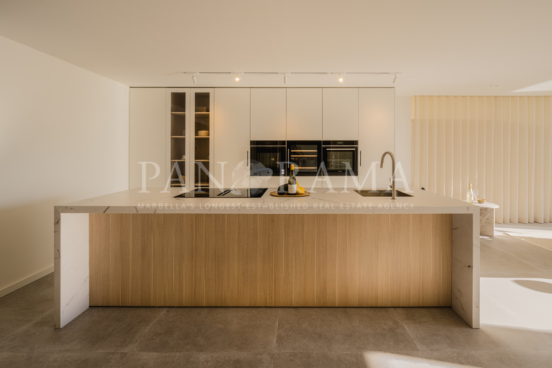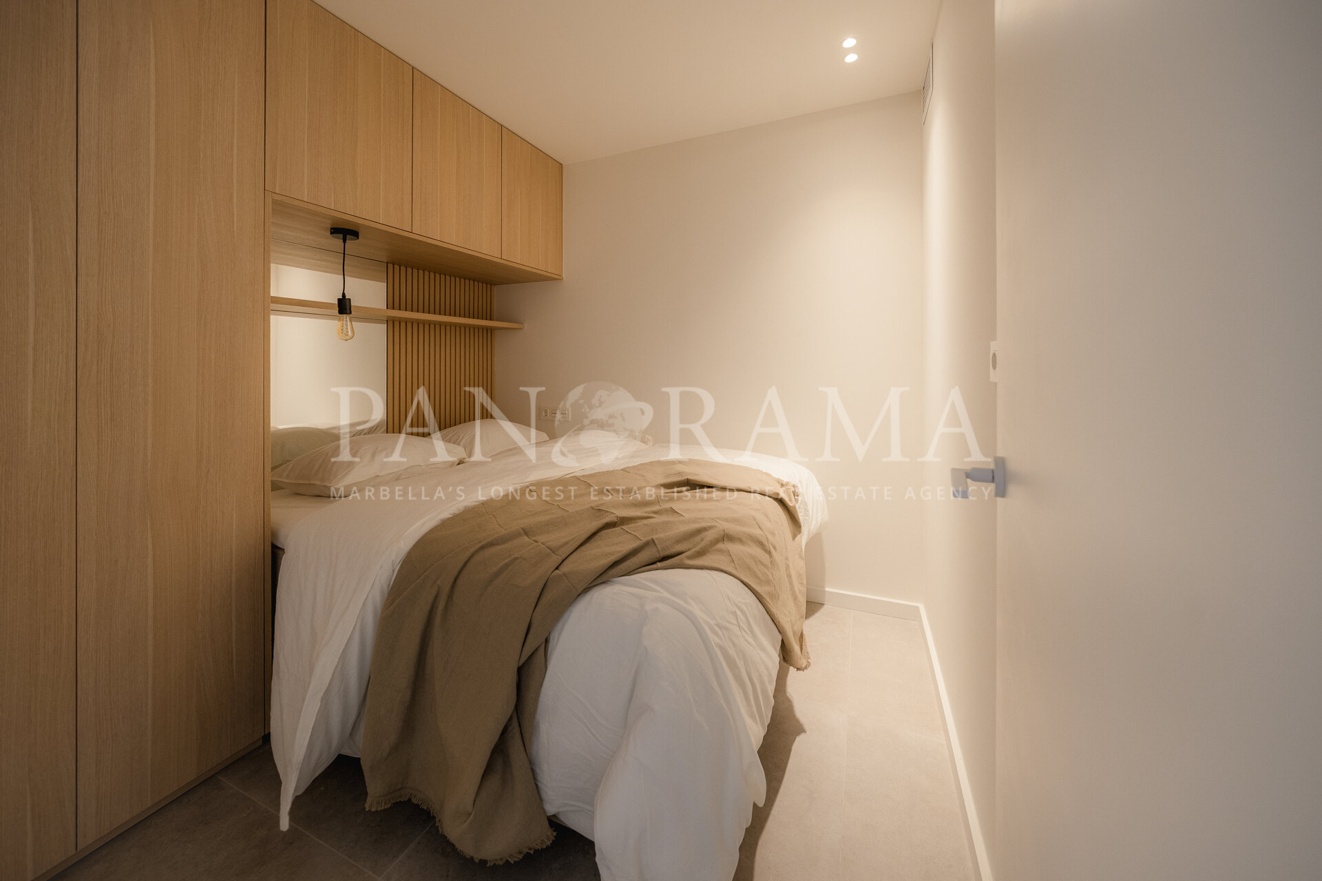 Gelegen in het hart van de meest gewilde enclave van Nueva Andalucía, La Cerquilla, biedt dit verfijnde appartement met drie slaapkamers een serene levensstijl van elegantie en comfort. Gevestigd binnen de exclusieve, beveiligde gemeenschap van Los Belvederes, is deze recent gerenoveerde woning op de begane grond een meesterlijke combinatie van verfijnd Scandinavisch design en hoogwaardige afwerkingen, wat resulteert in een woning die zowel geraffineerd als uiterst comfortabel aanvoelt.