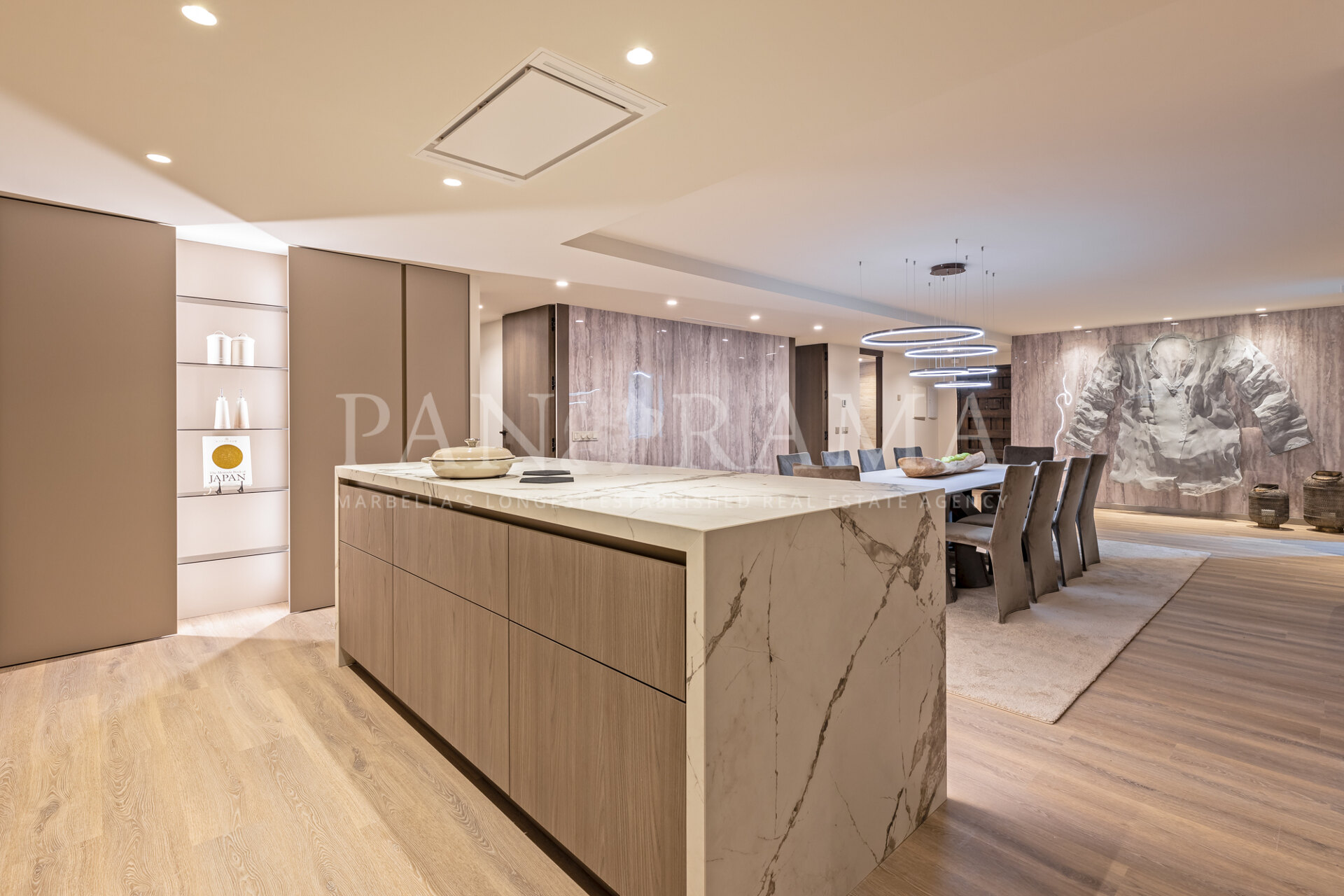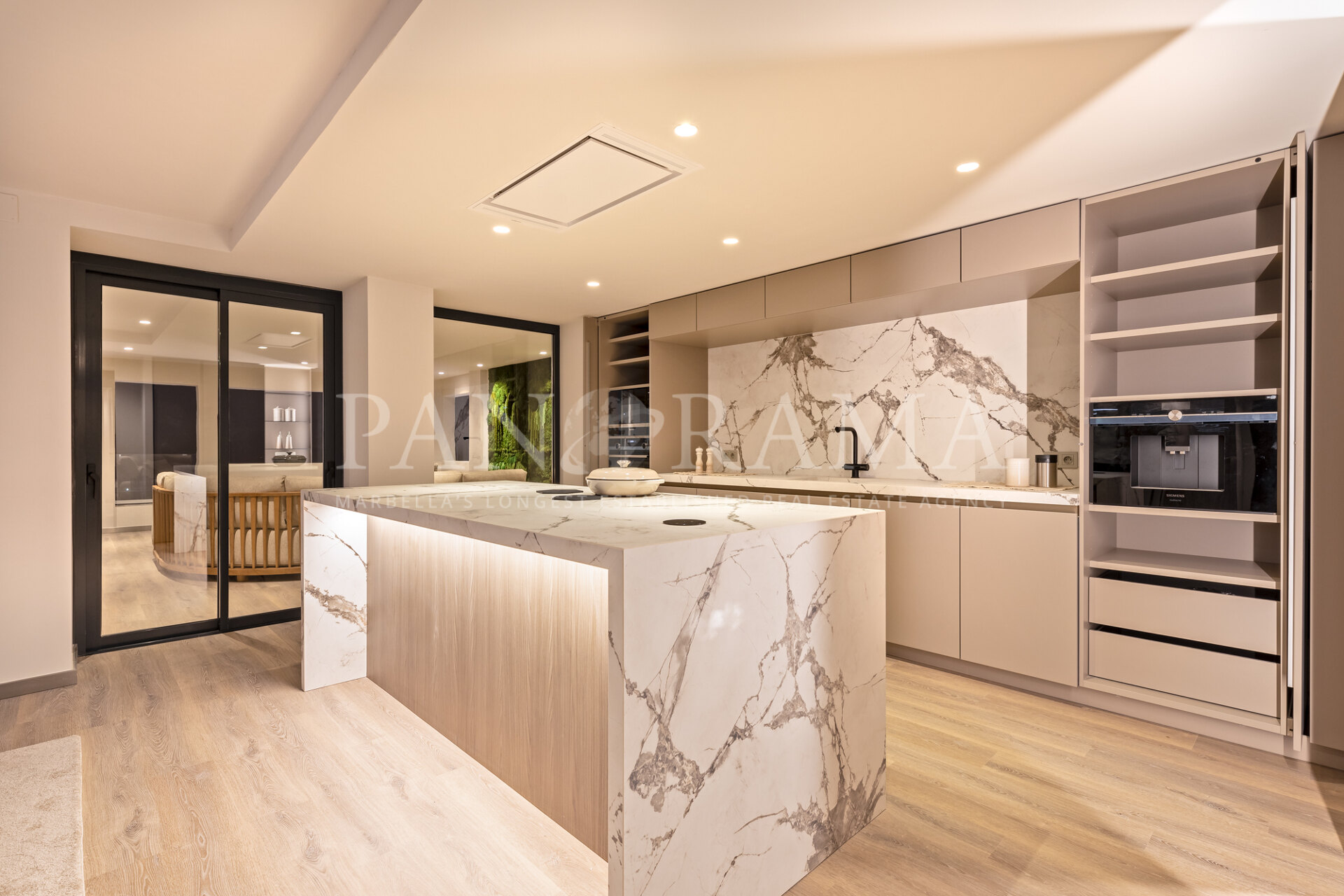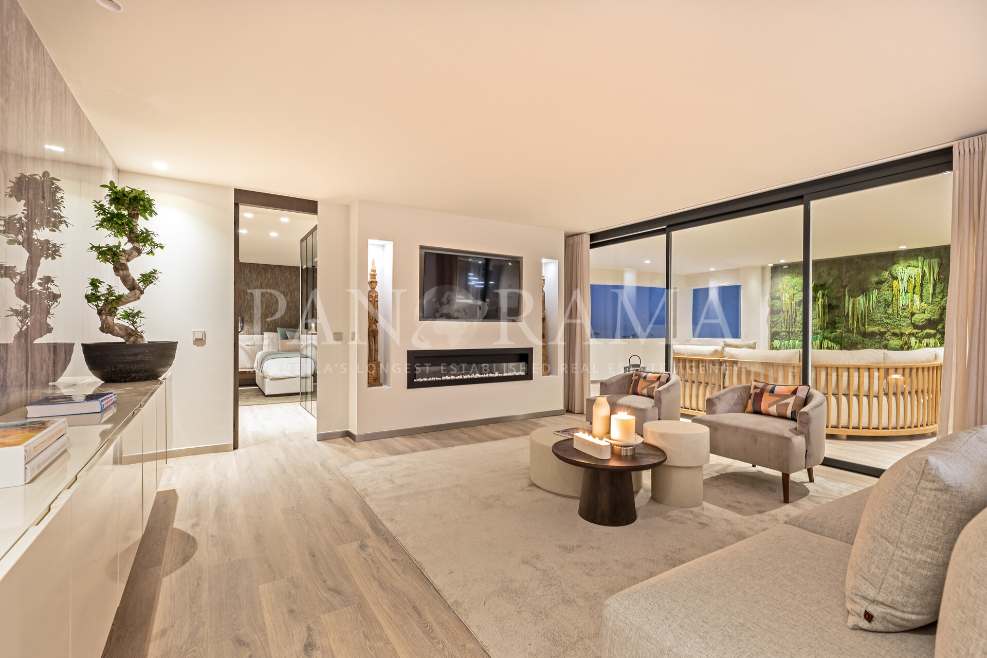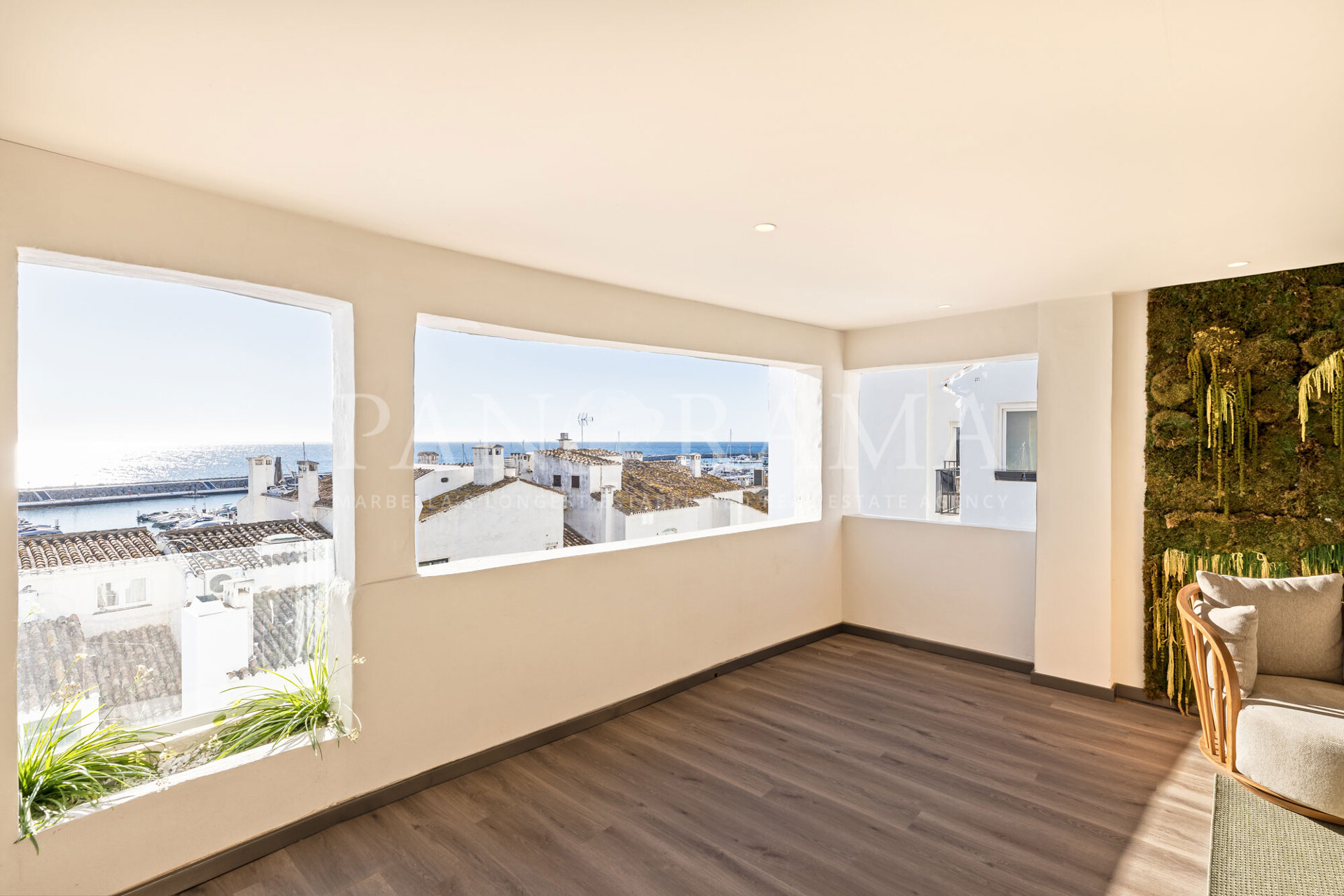 Het terras is werkelijk een verlengstuk van uw leefruimte, ontworpen voor ontspanning en plezier. Het is ingericht met loungeset, een milieuvriendelijke vuurplaats en een prachtige moswand als kunstwerk, wat een vredige retraite creëert. Vanaf hier kunt u genieten van adembenemende uitzichten op de jachthaven van Puerto Banús, wat het de perfecte plek maakt voor een rustige ochtendkoffie of een ontspannen avond.