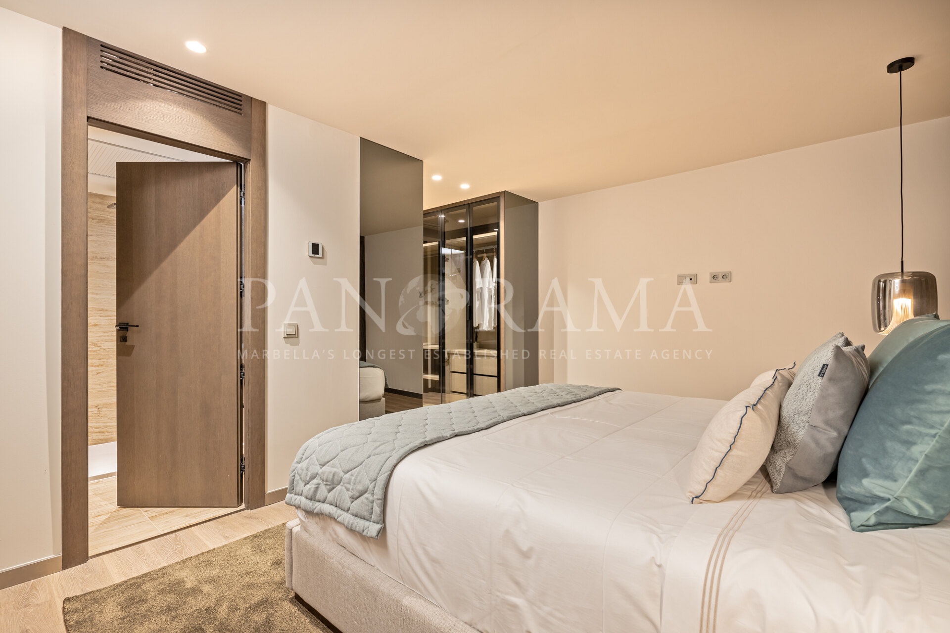 Deze woning is ook voorzien van doordachte details zoals vloerverwarming, airconditioning, een milieuvriendelijke open haard in de lounge en discrete elektrische rolluiken voor extra gemak.