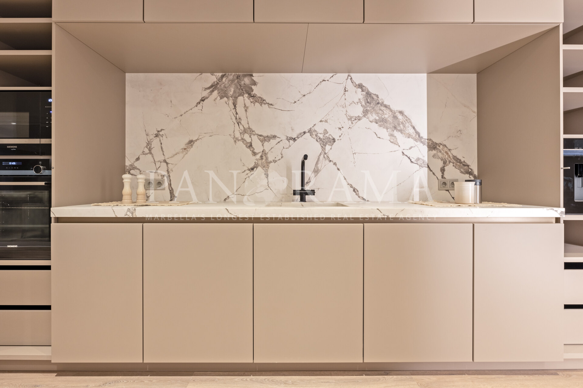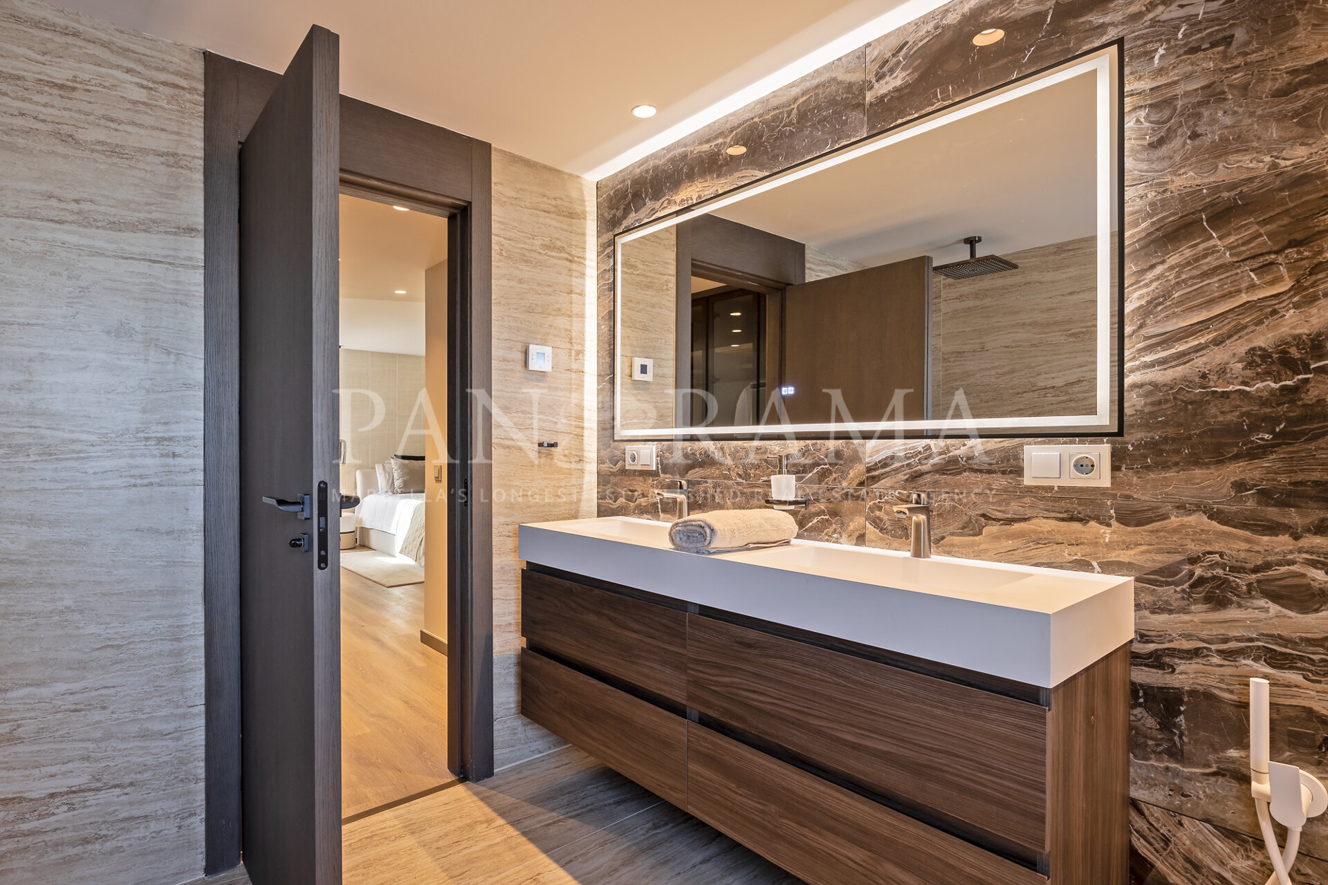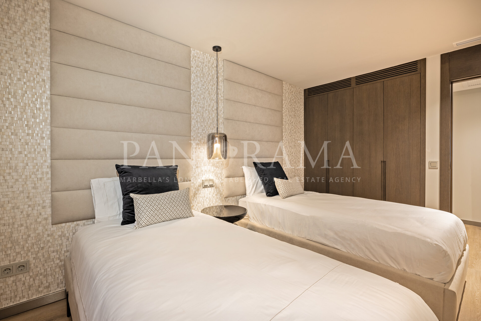 Elk van de vijf ruime slaapkamers is ontworpen met comfort in gedachten en beschikt over hoogwaardige ingebouwde kasten voor al uw opbergruimte. De badkamers zijn op zichzelf een toevluchtsoord, met prachtige steengoed en Italiaanse marmeren muren die een verfijnde, spa-achtige sfeer creëren.