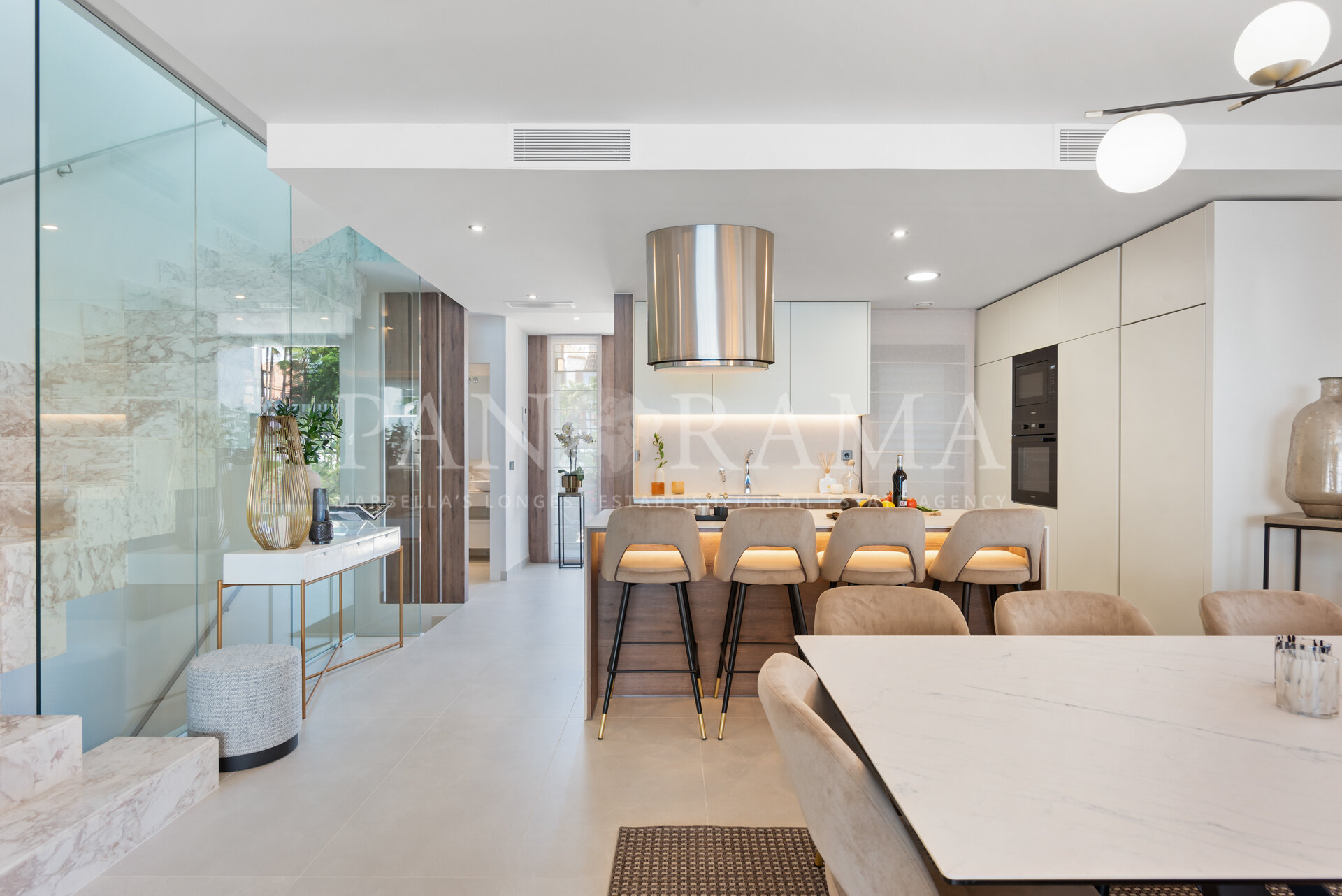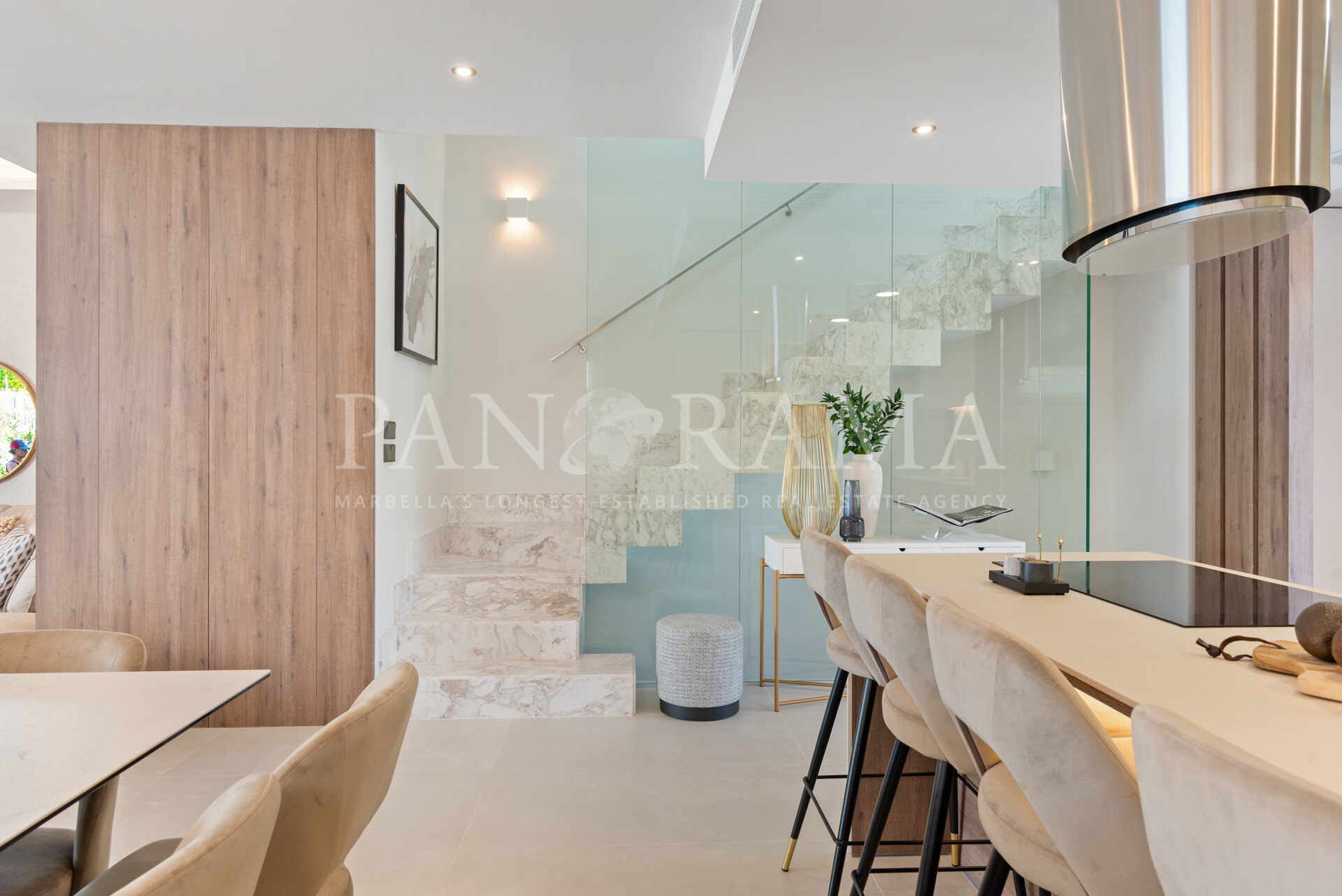 Dit prachtige herenhuis bevindt zich in Banús Bay Residences, een van de meest exclusieve gebieden nabij Puerto Banús. Slechts 150 meter van het strand, biedt de woning de perfecte mix van moderne luxe en ontspannen kustleven. Gebouwd in 2021, beschikt het huis over vier verdiepingen en biedt het vijf ruime slaapkamers en vier badkamers verdeeld over 265 vierkante meter elegante, goed ontworpen ruimte.