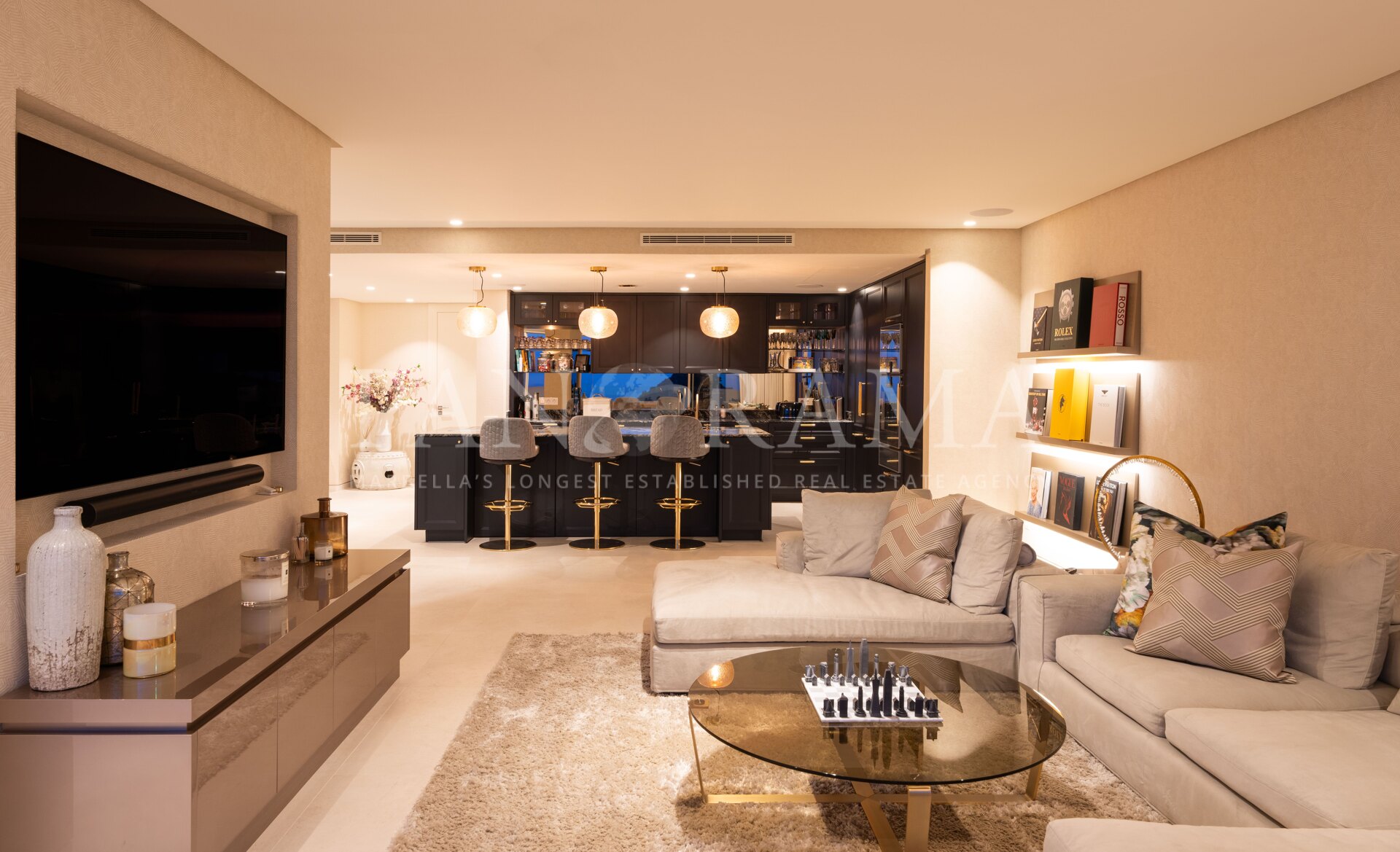 Dit exclusieve 3-slaapkamer 3-niveau penthouse bevindt zich onder het witte bergdorp Ojen, op slechts enkele kilometers ten noorden van Marbella. Deze milieuvriendelijke high-end ontwikkeling is gecreëerd om de meest luxe levensstijl te bieden, met onvergetelijke panoramische uitzichten en vele luxe voorzieningen. De omheinde gemeenschap met 24-uurs beveiliging en conciërgediensten biedt haar bewoners een Health Club en een ultramoderne fitnessruimte, een SPA-centrum met Hammam en Jacuzzi, een verwarmd binnenzwembad, een Social Club en een werkruimte voor samenwerking. Prachtig aangelegde tuinen omringen de buitenzwembaden, speelplaatsen, tennis- en paddlebaan en een boerenmarkt! Het op het zuiden gelegen triplex penthouse is ontworpen volgens de hoogste specificaties en biedt een moderne esthetiek, het grootste comfort en functionaliteit. Een open concept verbindt een stijlvolle woonkamer, een eethoek en een strakke keuken in minimalistische stijl met een eiland. De brede en hoge schuiframen en glazen deuren zorgen voor een naadloze verbinding tussen binnen en buiten en laten veel zon en natuurlijk licht binnen. Het fantastische terras van 107 m² stelt bewoners in staat om volop te genieten van het fantastische uitzicht op zee en de bergen, en het klimaat van de Costa del Sol, dat wordt beschouwd als het beste van continentaal Europa. Het luxe pand beschikt over 3 serene, ruime slaapkamers (2 slaapkamersuites hebben een eigen badkamer), 3 moderne badkamers en 2 gastentoiletten. Het profiteert ook van 3 overdekte parkeerplaatsen en een berging. Er is ook een geweldig dakterras van 147 m² met een buitenkeuken, barbecue, eet- en zonneterras en een jacuzzi. Het biedt een geweldig panoramisch uitzicht van 180 graden over de kust, de Middellandse Zee en de idyllische omgeving. Eigenlijk heeft elke verdieping van dit buitengewone pand een ruim terras met uitzicht op zee naar Gibraltar en de Noord-Afrikaanse piek. Dit stijlvolle en slimme huis wordt te koop aangeboden in uitstekende staat, mooi ingericht en goed uitgerust, met optioneel meubilair (onderhandelbaar), internet – Wi-Fi en satelliet-tv. Het is ook uitgerust met een lift, airconditioningsysteem, vloerverwarming, Dolby Stereo Surround-systeem, automatisch irrigatiesysteem, elektrische rolluiken, dubbele beglazing, inbouwkasten, enz. Beïnvloed door de natuur, creëren de neutrale, rustgevende kleuren een kalmerende sfeer. Beveiliging en video-ingang, alarmsysteem en bewakingscamera’s zorgen voor gemoedsrust.
