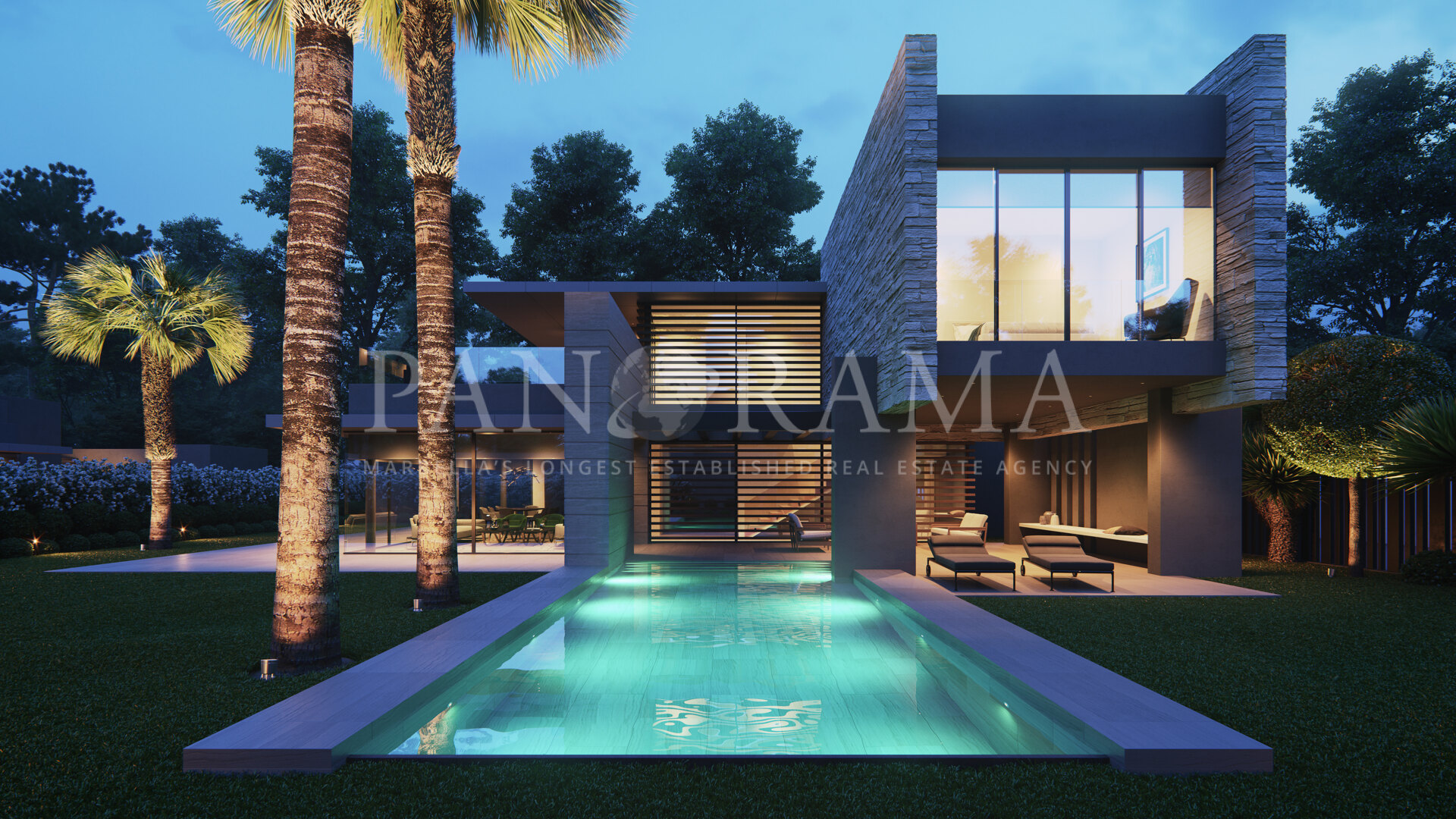 De kamers integreren perfect met de buitenruimtes, die een ruime buitenwoonruimte, een privétuin met goed onderhouden gazon, majestueuze palmbomen en een indrukwekkend zwembad omvatten. Het interieurontwerp is geïnspireerd op de mediterrane levensstijl, waarbij het genieten van het klimaat, dat als een van de beste in continentaal Europa wordt beschouwd, wordt gemaximaliseerd.