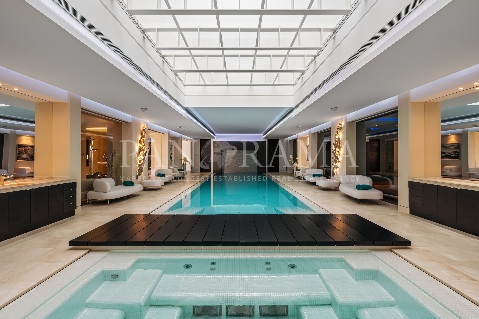 Distributed over three floors connected by an elevator, this spectacular villa features seven spacious bedrooms and nine elegant bathrooms. Its intelligent layout includes multiple living rooms, reception areas, and entertainment spaces, all with large windows that flood the rooms with natural light and offer stunning views. Its spacious covered and open terraces, totaling 581 m², allow you to fully enjoy the Mediterranean lifestyle.
