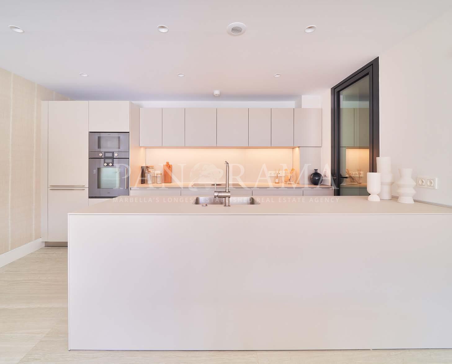 The apartments themselves feature exquisite finishes, with an emphasis on quality and elegance. Expansive windows allow natural light to flood the living spaces, while providing direct access to generously sized terraces, perfect for soaking in the stunning panoramic views of the sea. Only the finest materials from renowned international brands have been used throughout the interiors, ensuring a luxurious atmosphere in every room. Furthermore, each home is equipped with a cutting-edge domotic (smart home) system, which adds an extra layer of convenience and efficiency, making daily life both comfortable and practical.