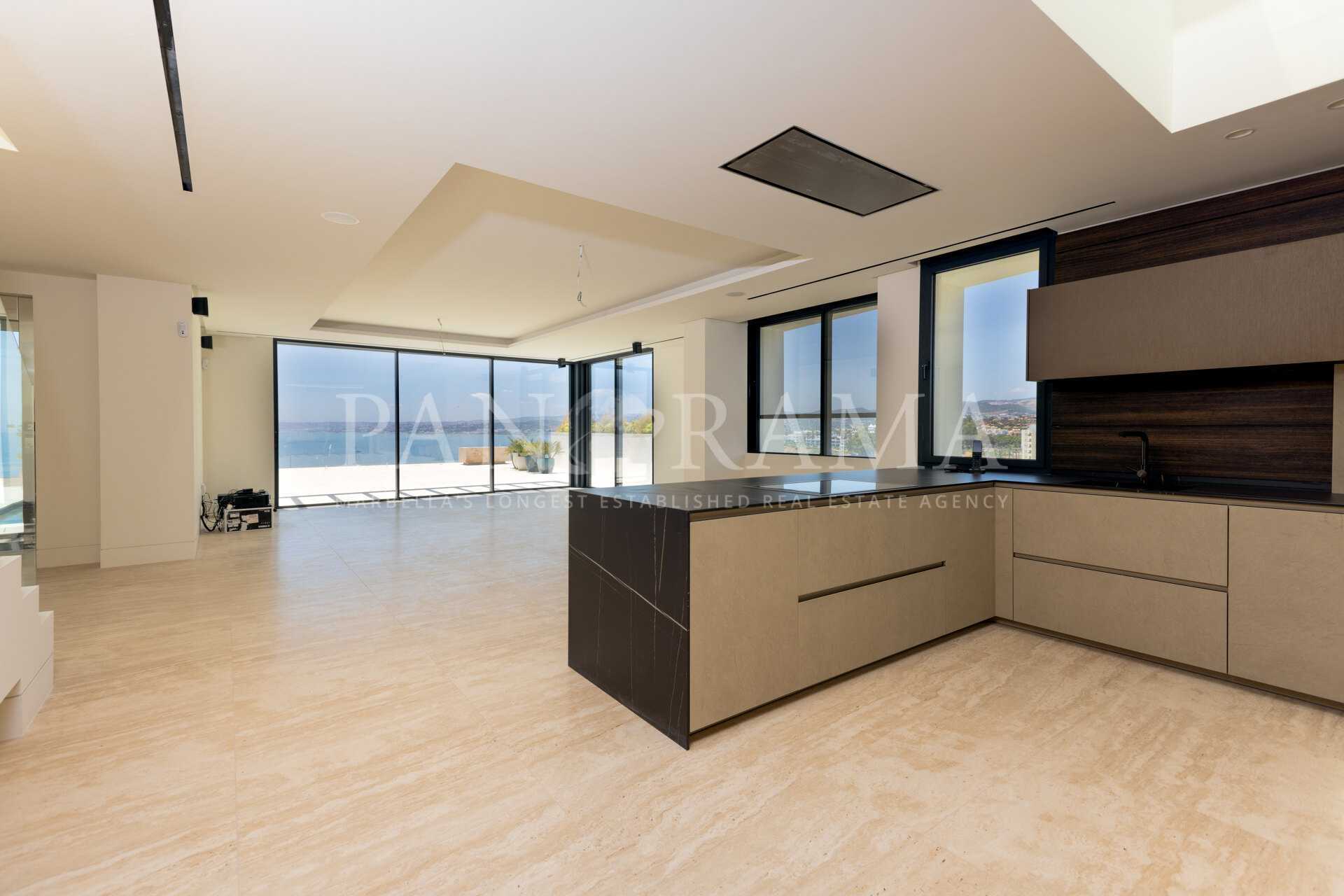 The highlight of the property is its expansive private terrace, where you can soak in breathtaking views of the Mediterranean Sea. This outdoor space is ideal for relaxing with a morning coffee, enjoying a meal with loved ones, or simply taking in the tranquil surroundings. Additionally, the apartment features its own infinity pool, adding an extra layer of luxury and providing a serene setting for unwinding or entertaining.