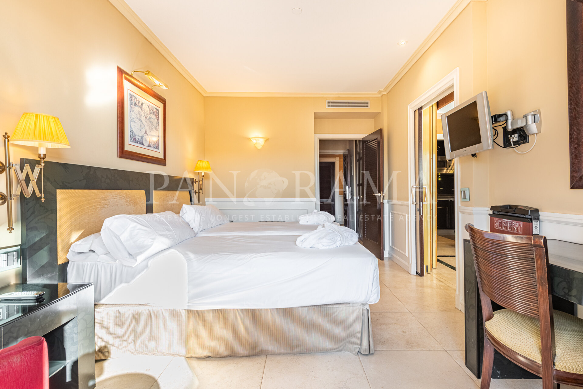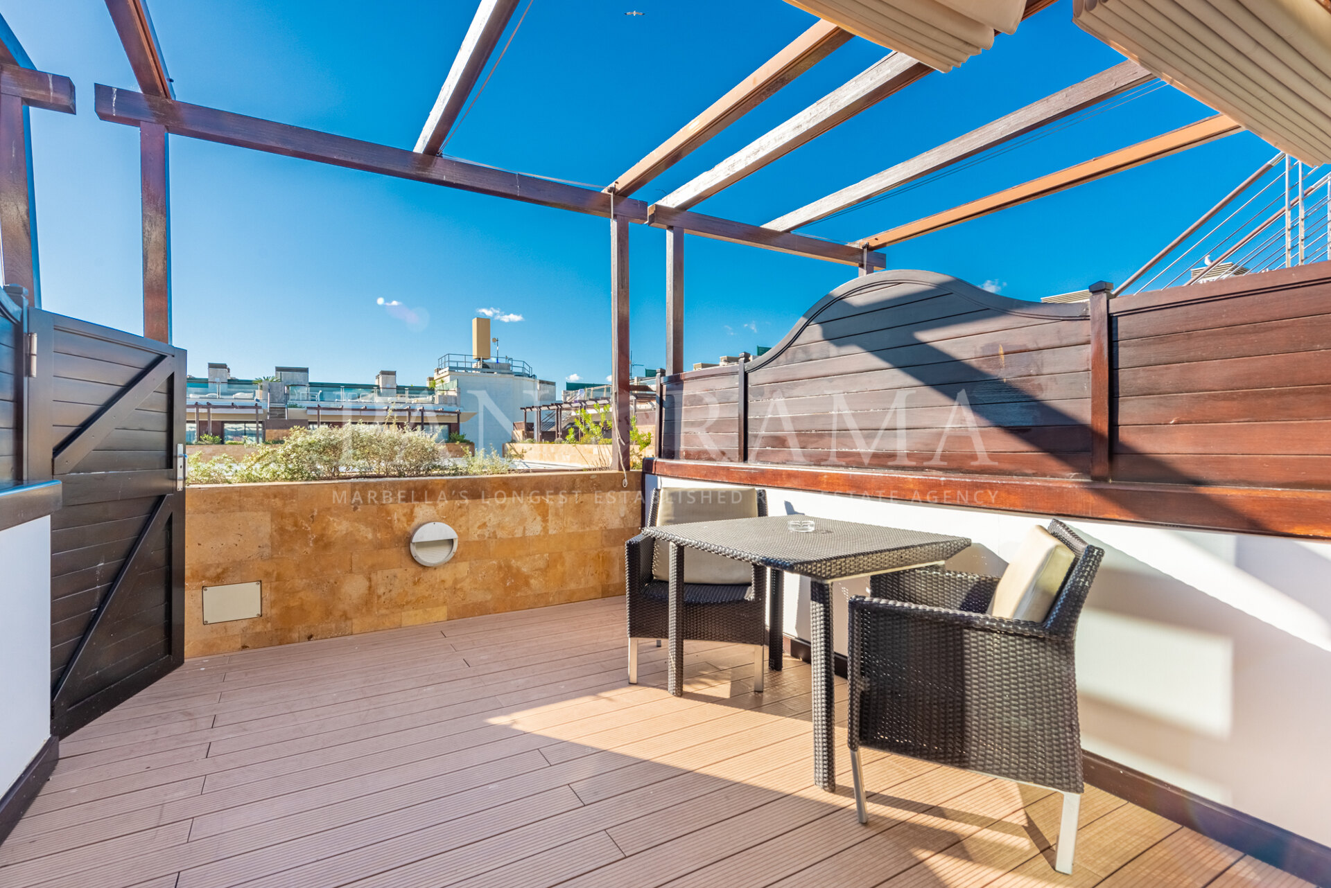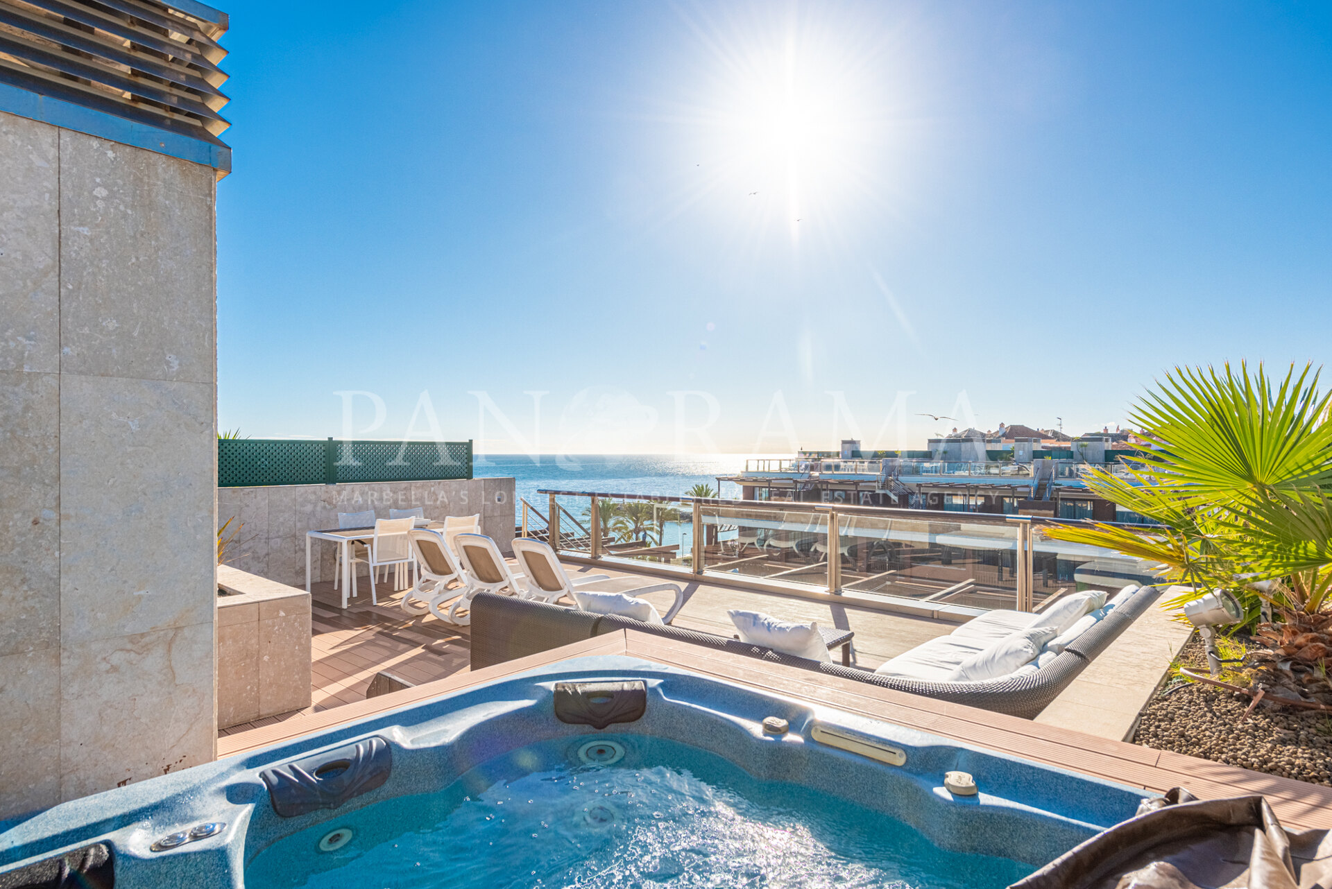 Penthouse apartment situated in one of the most luxurious beachside hotels in Puerto Banús. This property enjoys incredible sea views and its 100-m2 solarium is the perfect place to relax, sunbathe and enjoy the views and the atmosphere of this wonderful hotel. The penthouse comprises a room and a suite that were joined together. The suite includes a living room and a fully equipped kitchenette. Both the suite and the room have access to a spacious terrace and from the suite terrace, a staircase leads to the solarium. This 5-star hotel is located on Rodeo Beach, next to the famous Puerto Banús marina and close to San Pedro de Alcántara, and offers several restaurants, bars, a reception, a gymnasium, a spa, swimming pools and many more exclusive services. A great investment product managed by the hotel and giving a yearly return of 4%. A property ideal both for holidays and year-round living!