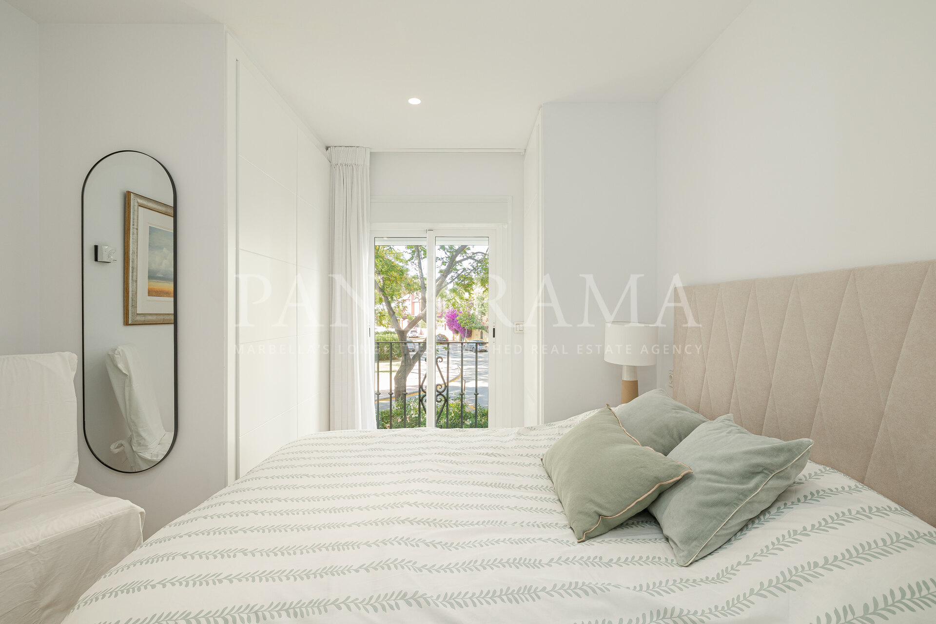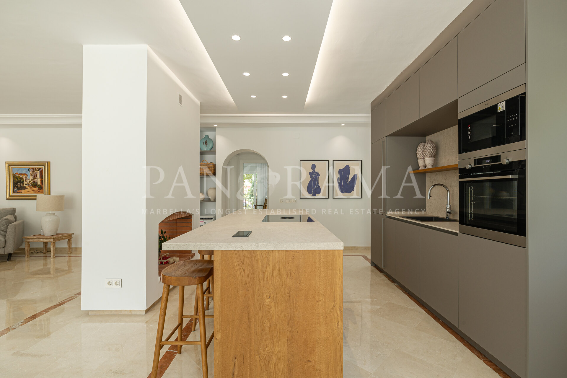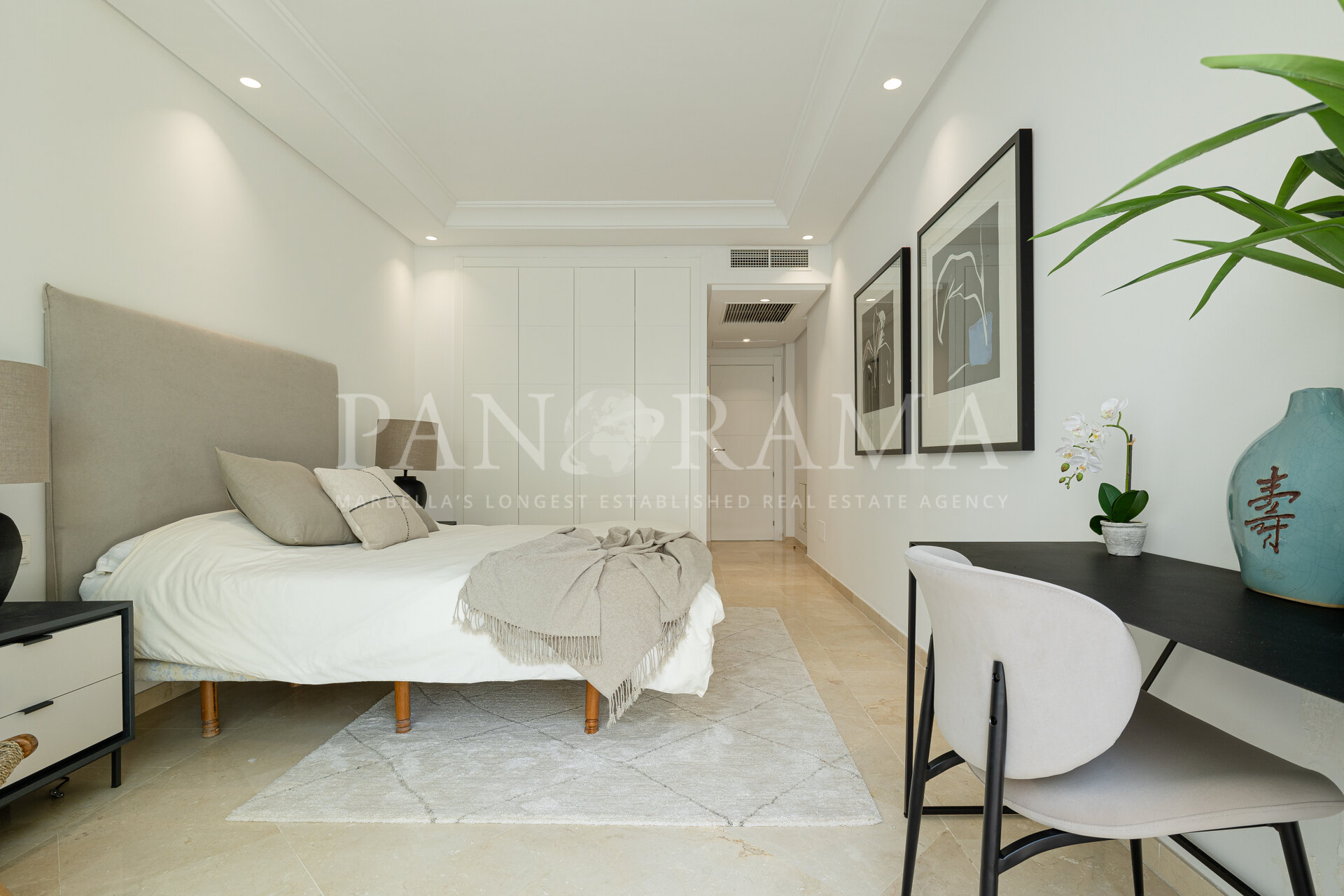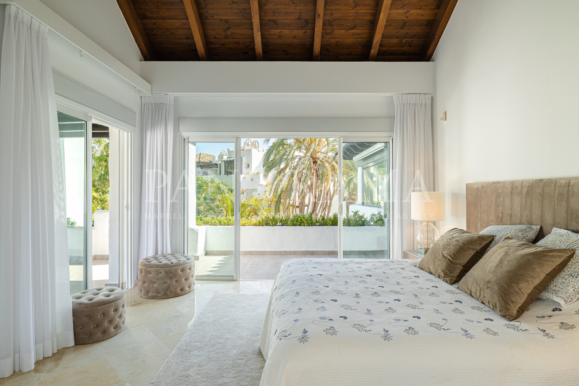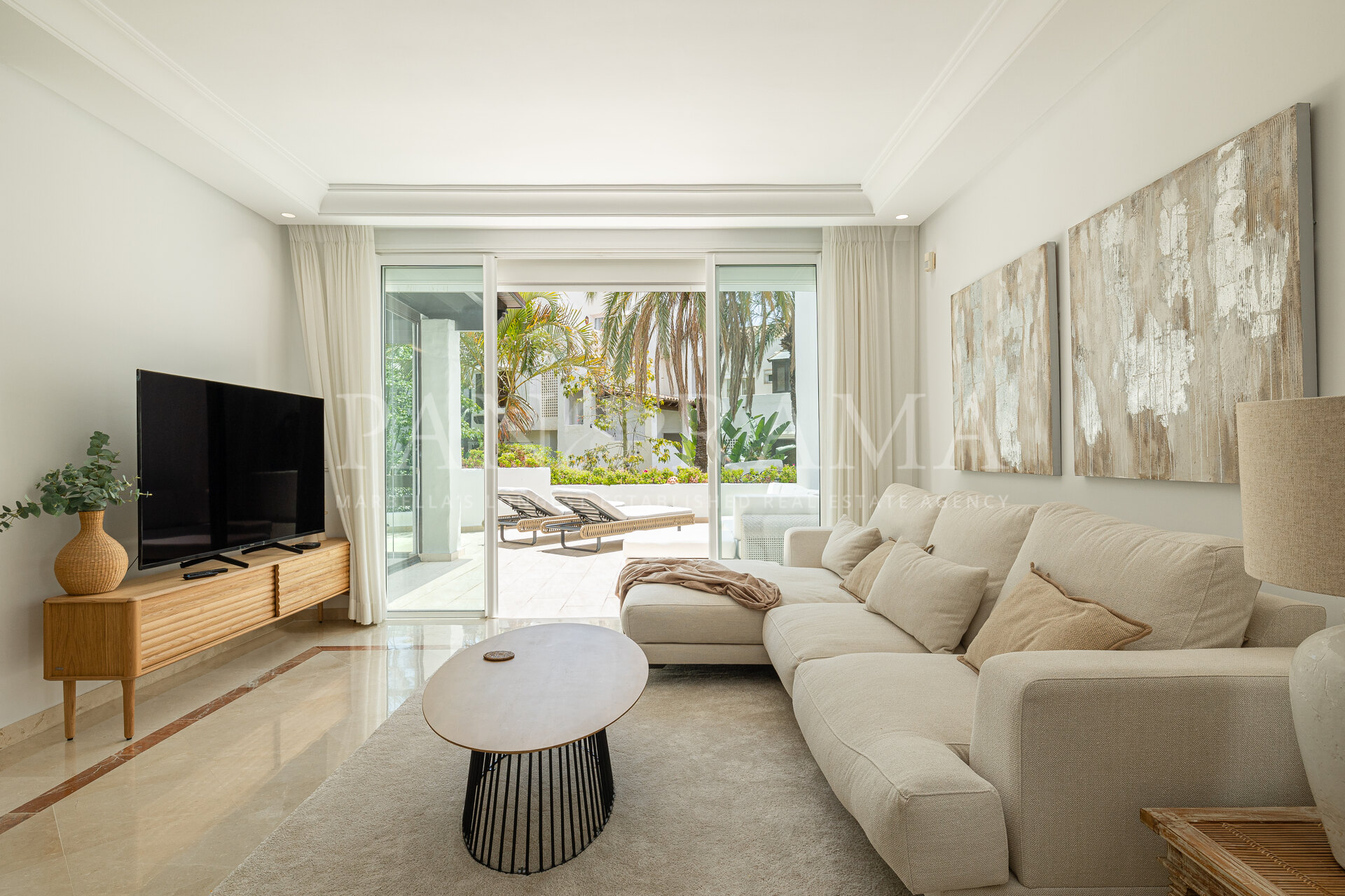 Corner duplex penthouse located in an established area within a short walk to Puerto Banús and San Pedro de Alcántara. Designed by the renowned architect Melvin Villarroel, Ventura del Mar is one of the most prestigious and ideally situated beachfront developments in Marbella. This luxurious complex offers 24-hour security and privacy, meticulously maintained tropical gardens with streams and ponds, a large outdoor swimming pool, and a games and relaxation area with a gym. Residents also have direct access to the promenade and the beach.