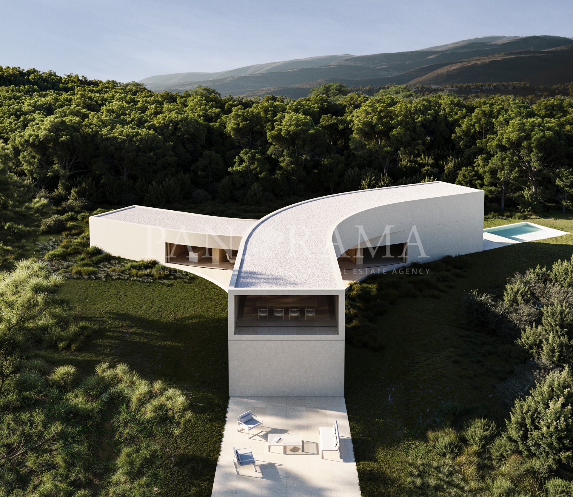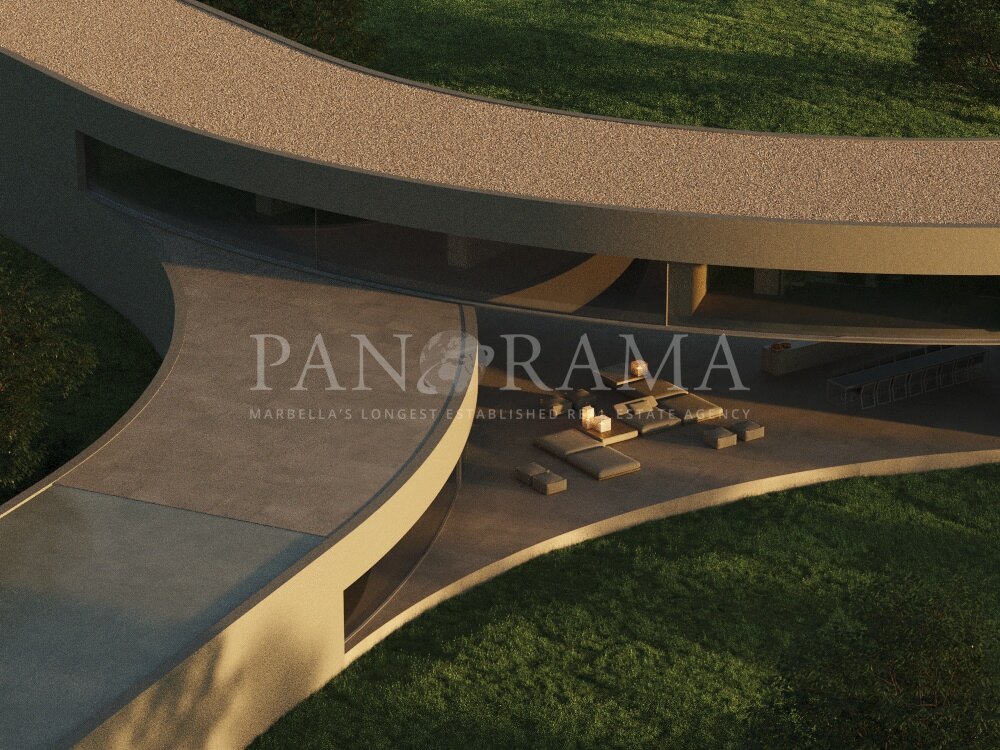 Designed with a unique curved architecture, this villa stands out with its sophisticated aesthetics and seamless integration with the environment. The exterior is a harmonious blend of smooth lines and expansive glass panels, allowing natural light to flood the interior spaces and providing breathtaking panoramic views of the surrounding landscape. Every room in this villa is designed to capture the beauty of the outdoors, creating a living experience that is both immersive and inspiring.