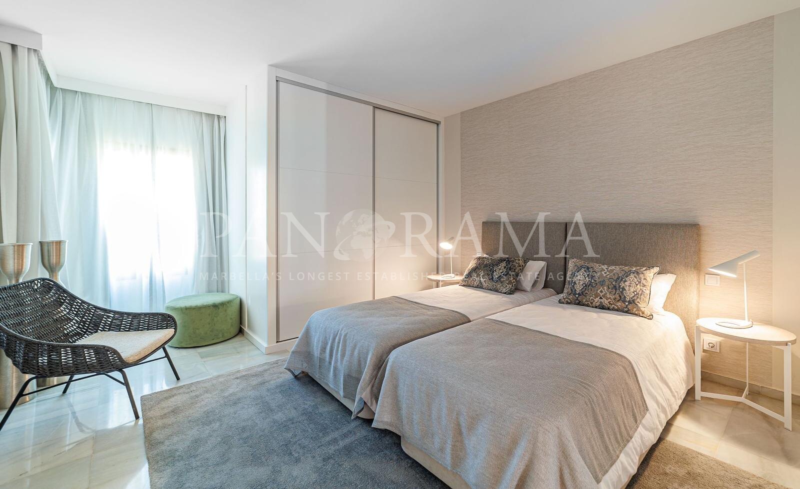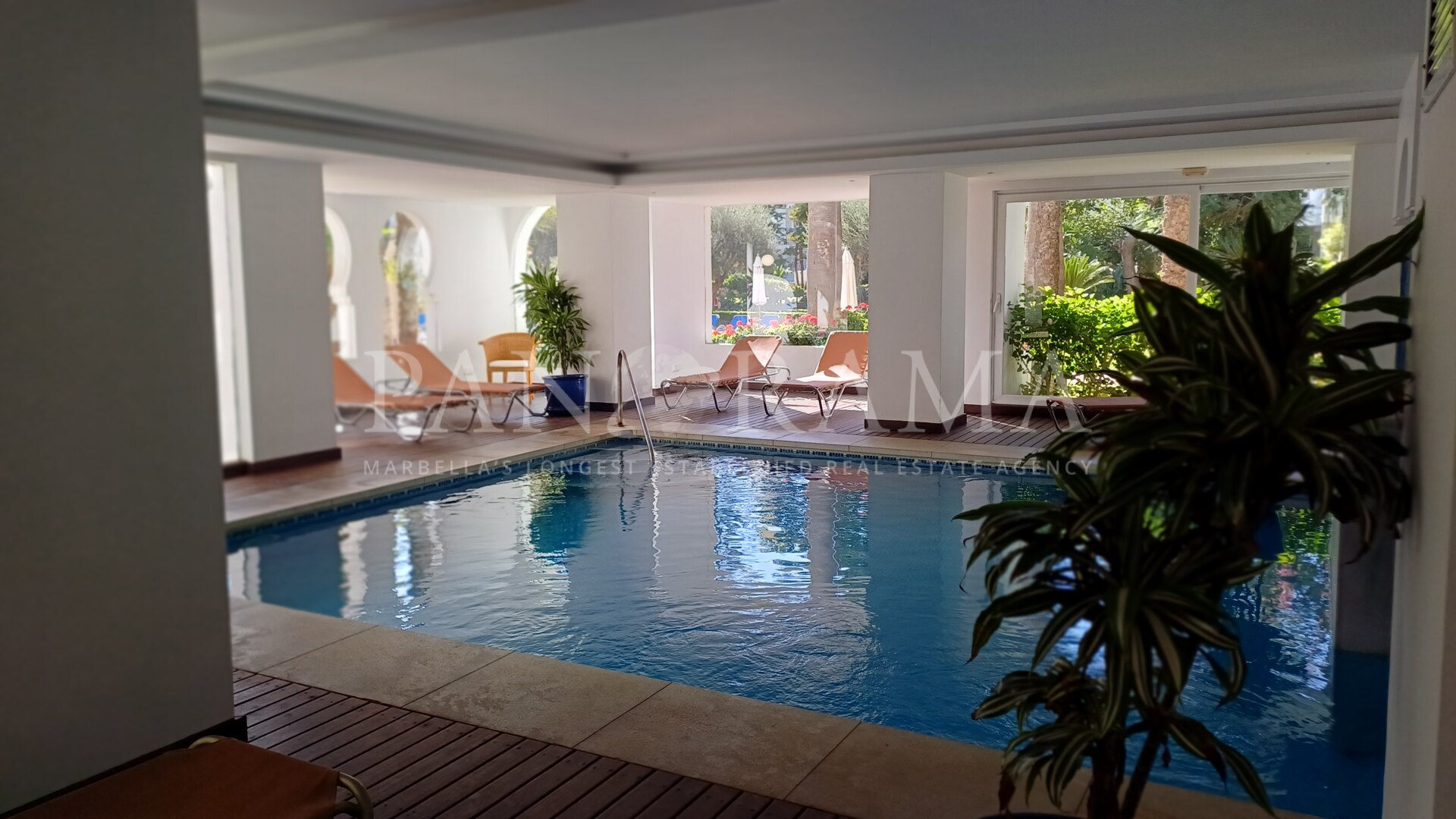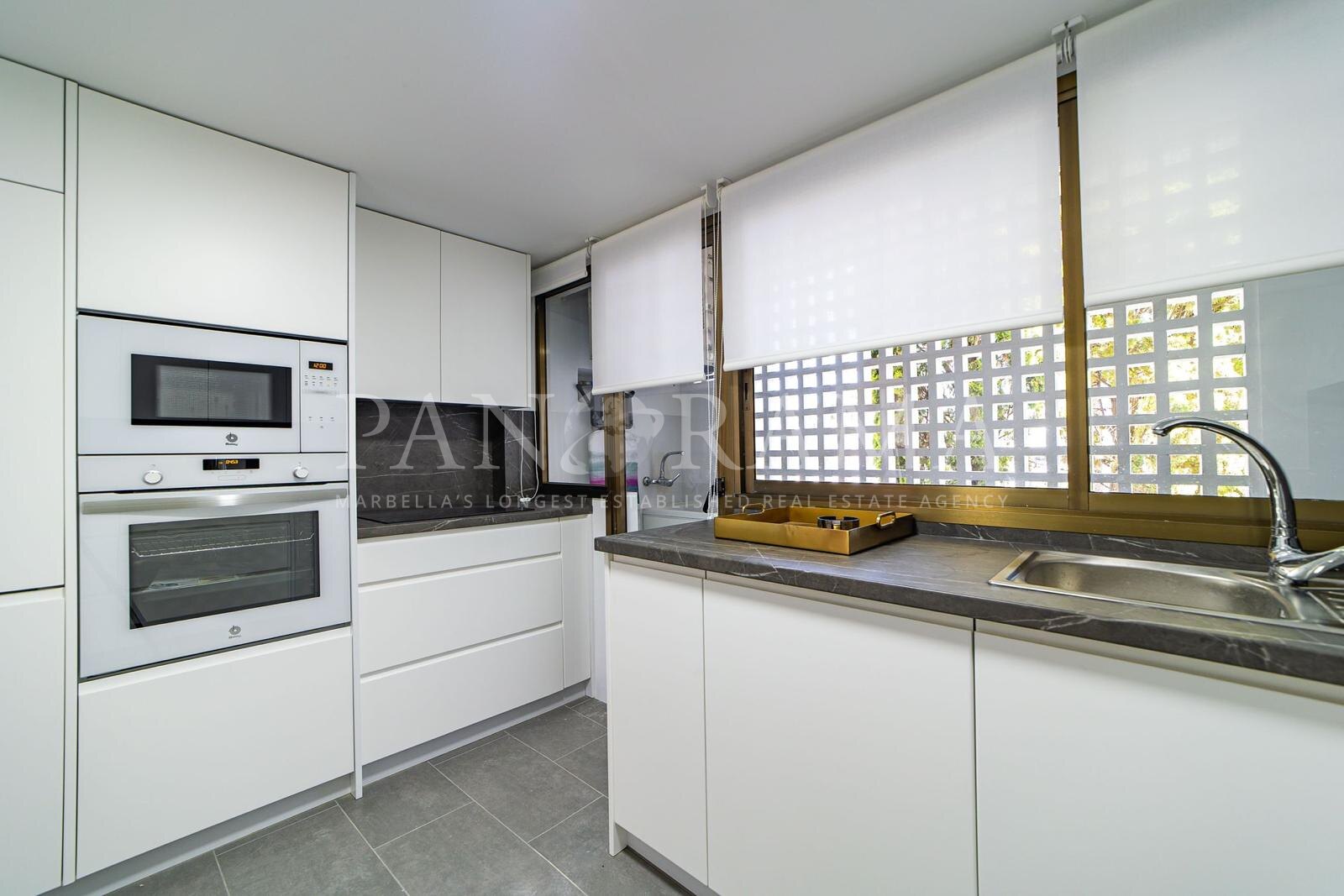 This beautifully renovated two-bedroom apartment is situated in La Alcazaba, a prestigious five-star community that offers an enviable lifestyle just a short walk from the famous Puerto Banús and its stunning beaches. La Alcazaba is a highly sought-after area known for its tranquility while being close to all the amenities and attractions that make Marbella such a desirable destination.